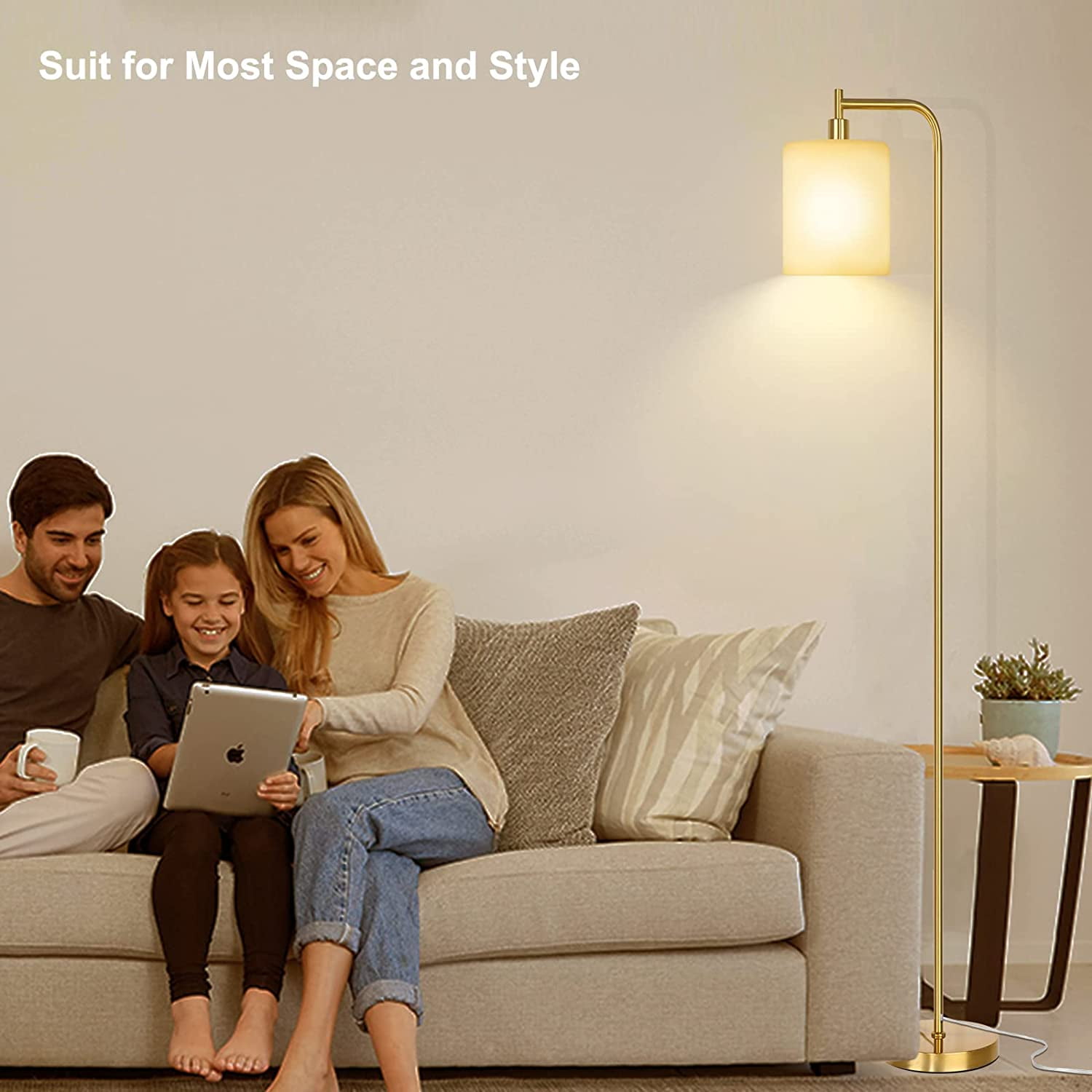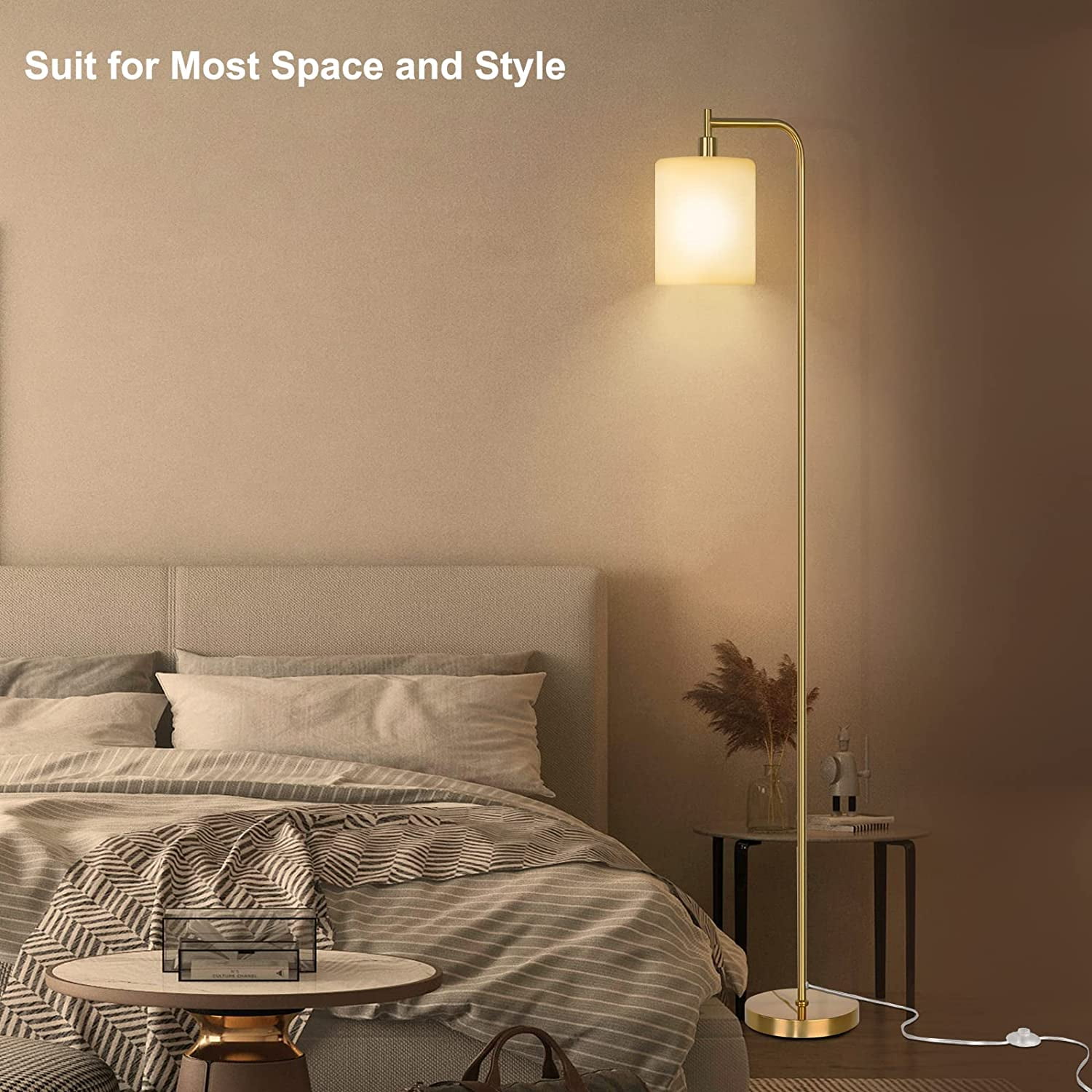 Eye-caring Frosted Glass Shade: Cast a warm glow into space by combining this standing floor lamp(the Model: X003BKZ5RZ) with a matte glass shade. This floor lamp for living room give a close approximation of natural light that reduces eye strain while working or studying, that protects your eyes. The free E26 LED floor lamp bulb is 3 color temp: 3000K/4000K/5000K, Brightness of the tall floor lamp can be adjusted as needed, which is suitable for reading, sewing, working, watching movies, breastfeeding, and sleeping. Anti-tipping Heavy Base and Convenient Foot Switch: Sturdy materials and excellent workmanship ensure that this dimmable floor lamp is upright, also, the lamps for bedroom adopt a heavy metal base, which provides good stability and durability, so no worry to have around children and pets because the tall lamp will not tip. Also, we specially chose the full socket foot switch design for the tall standing lamp, which frees hands and saves the trouble of bending over to turn off the lamp. 30000 Hours Lifespan LED Bulbs and Sturdy Metal Material: We provide energy-saving E26 LED bulbs, the living room light can be installed and used as soon as you receive the goods. Sturdy materials and excellent workmanship ensure that this floor light is upright, Each connection position of the standing lamp post adopts a metal threaded interface,which can be tightly connected without gaps. Both the bulb and the light stand are robust. Easy to Assemble and Professional Customer Service: All components are included in the package. The standing lamps for living room can be screwed together without tools. the whole farmhouse floor lamp can be easily assembled in a few minutes according to the installation sequence in the manual.