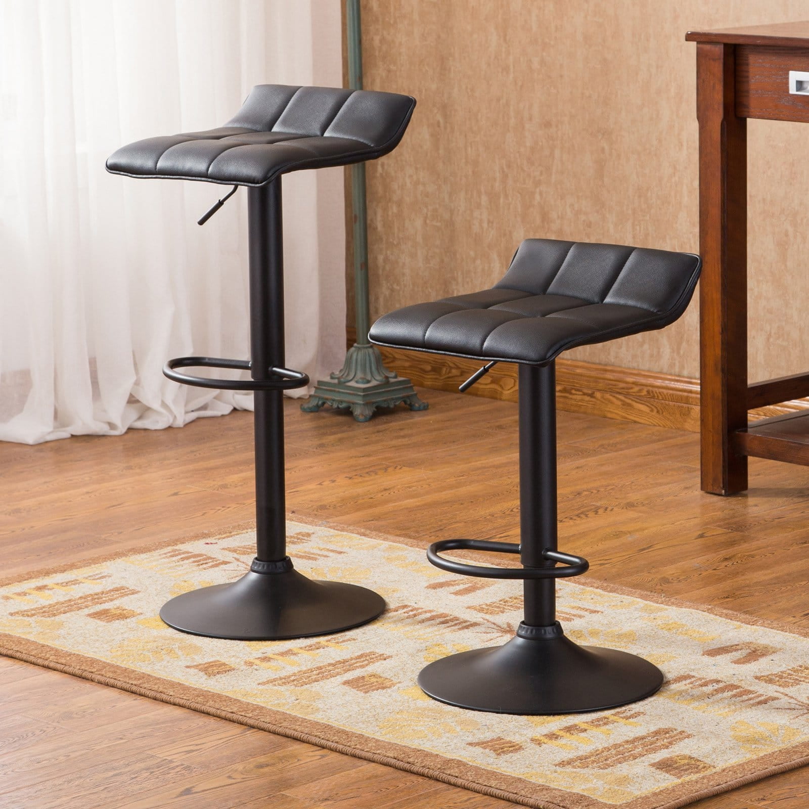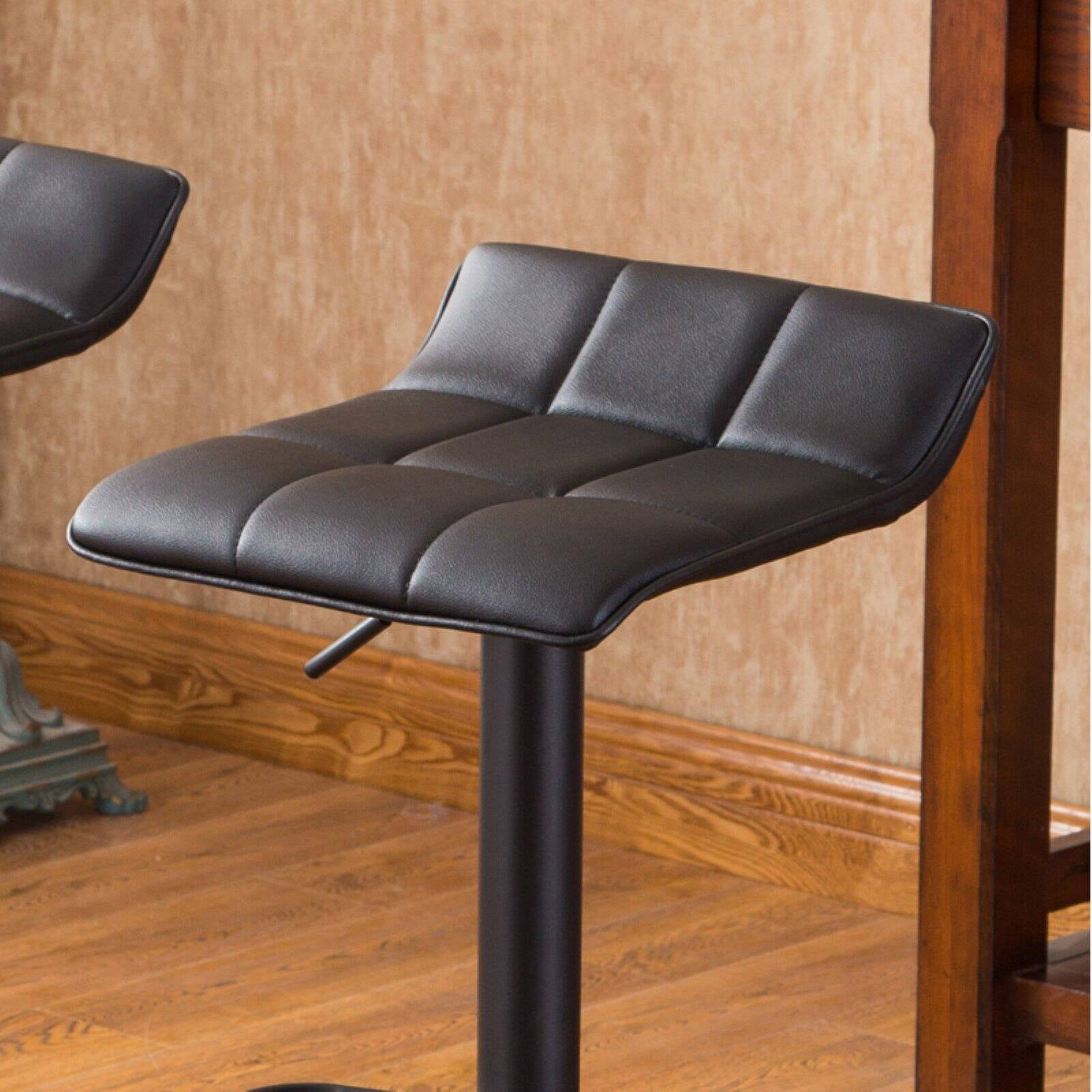 Roundhill Furniture Belham Swivel Black Bonded Leather Adjustable Bar Stool, Set of 2