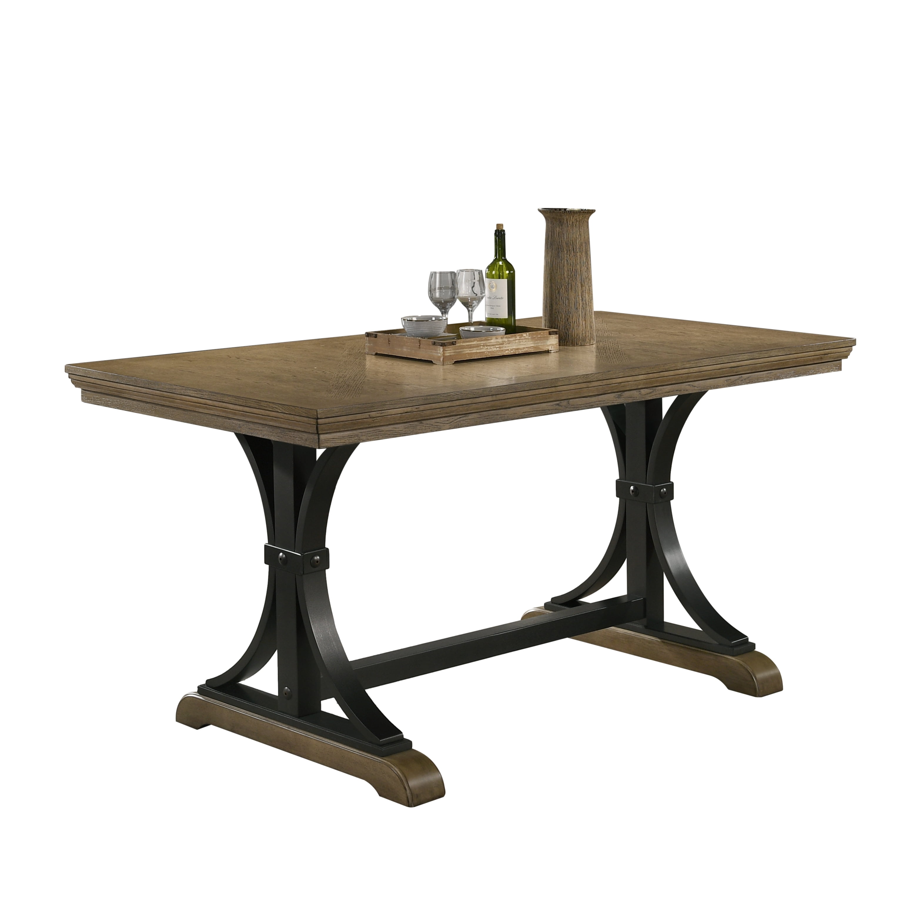 Roundhill Furniture Birmingham Rectangular Nailhead Trestle Counter Height Table, Driftwood Finish