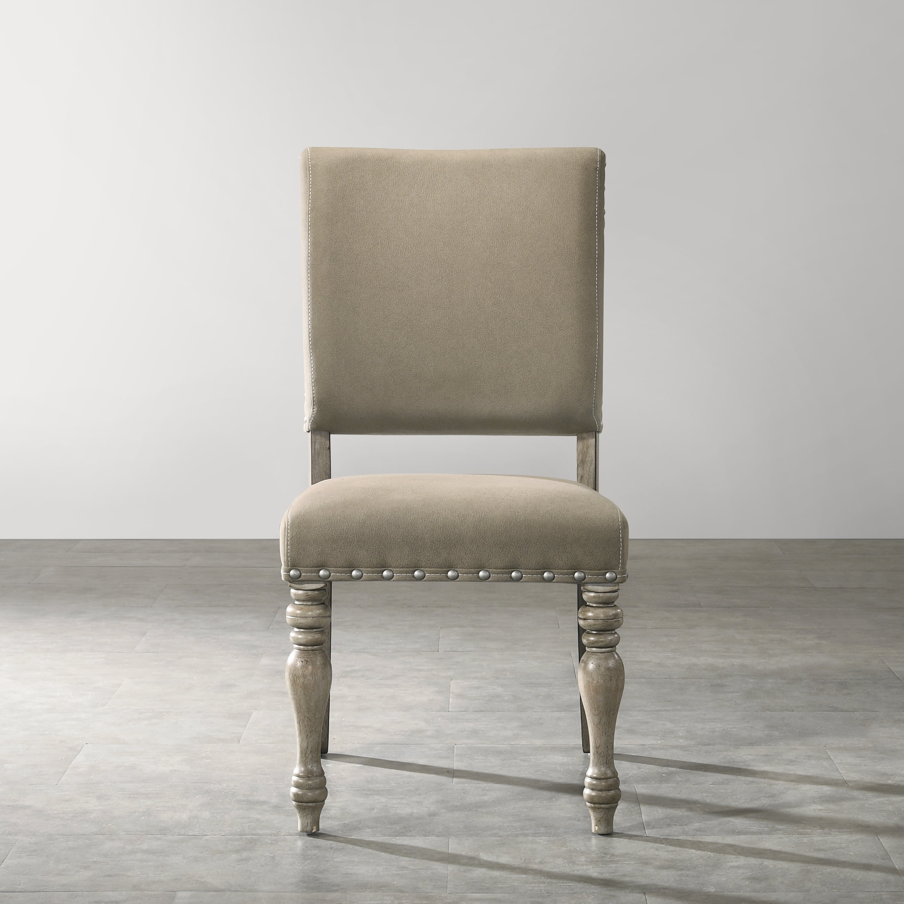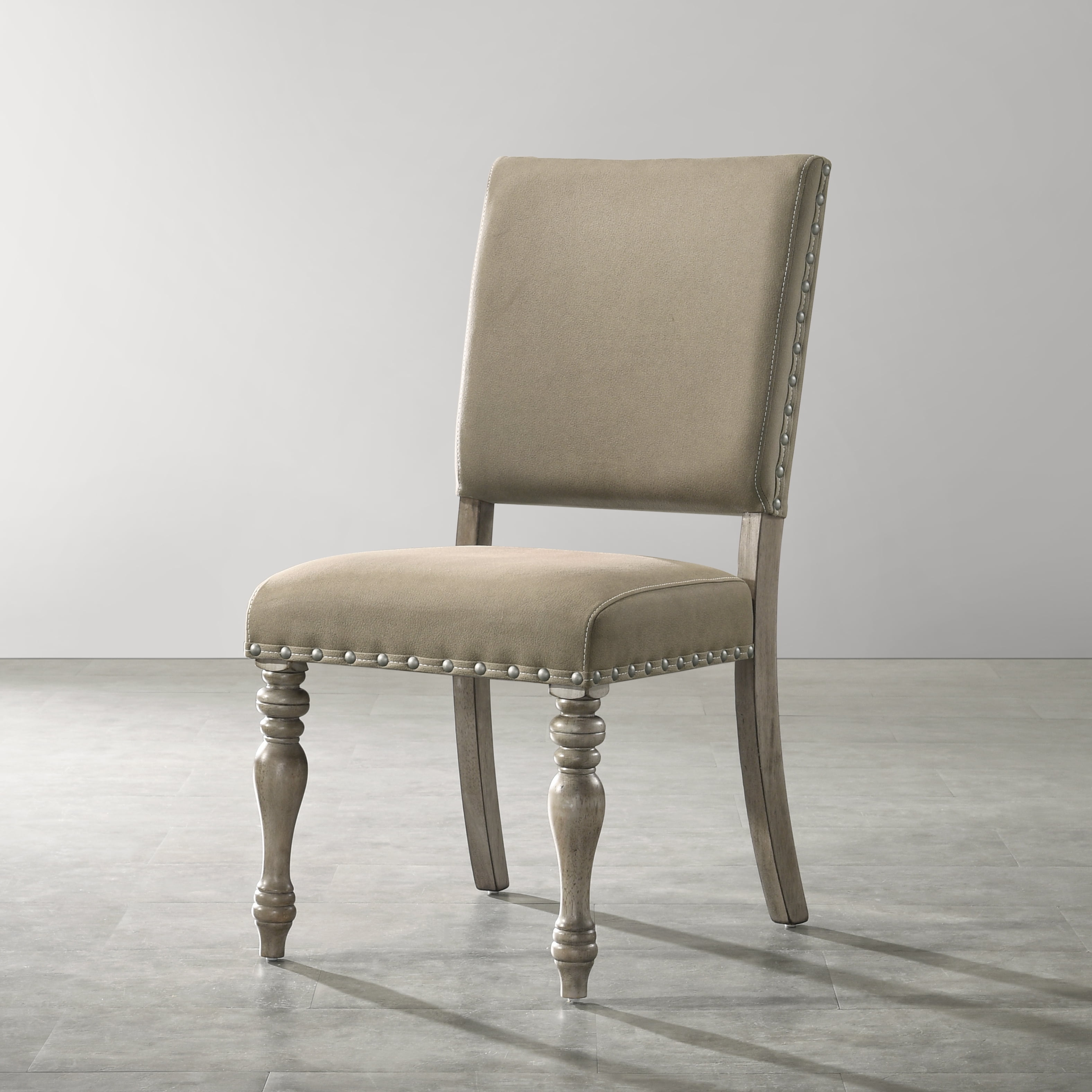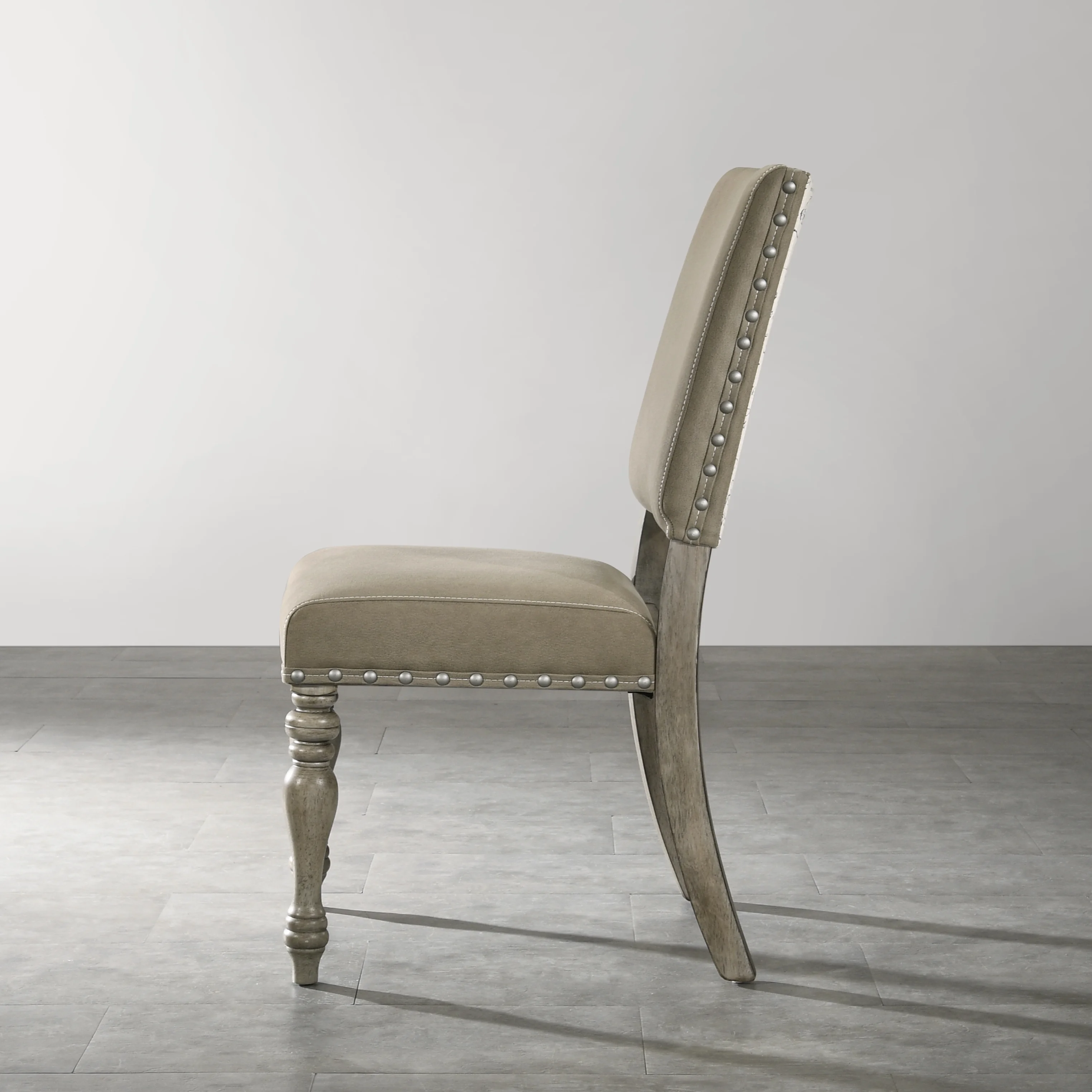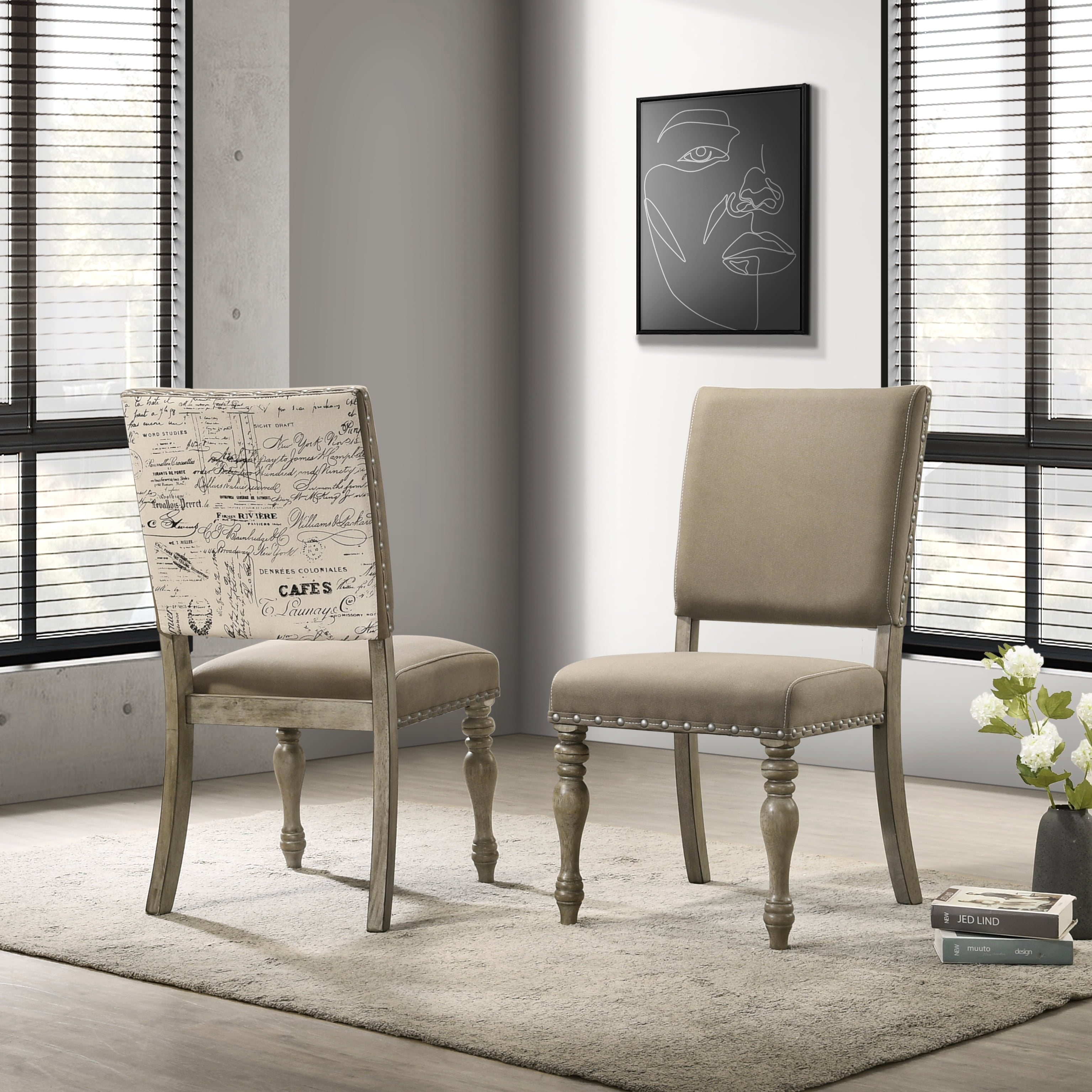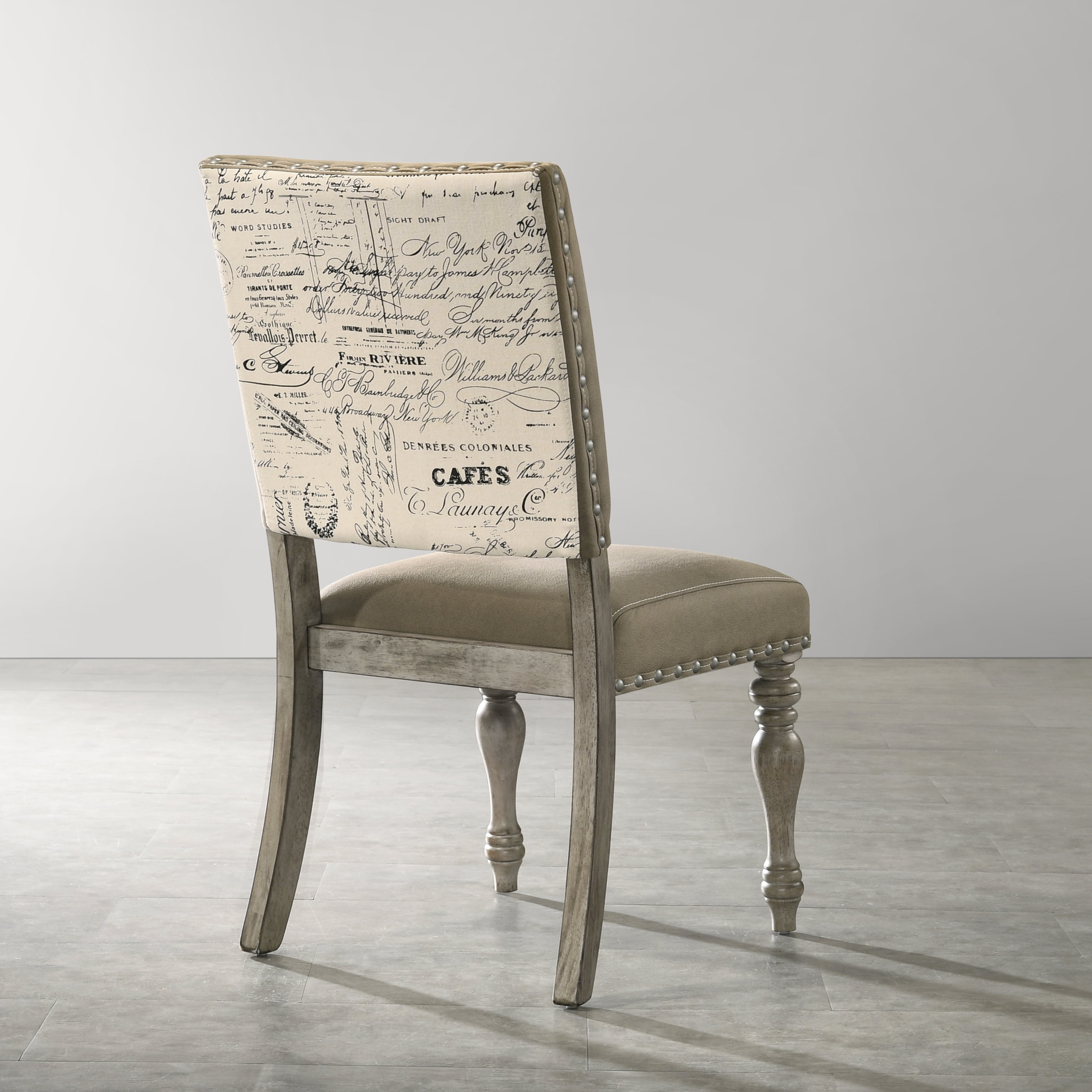 Roundhill Furniture Birmingham Script Printed Finish Dining Chair with Nail Head, Set of 2, Driftwood