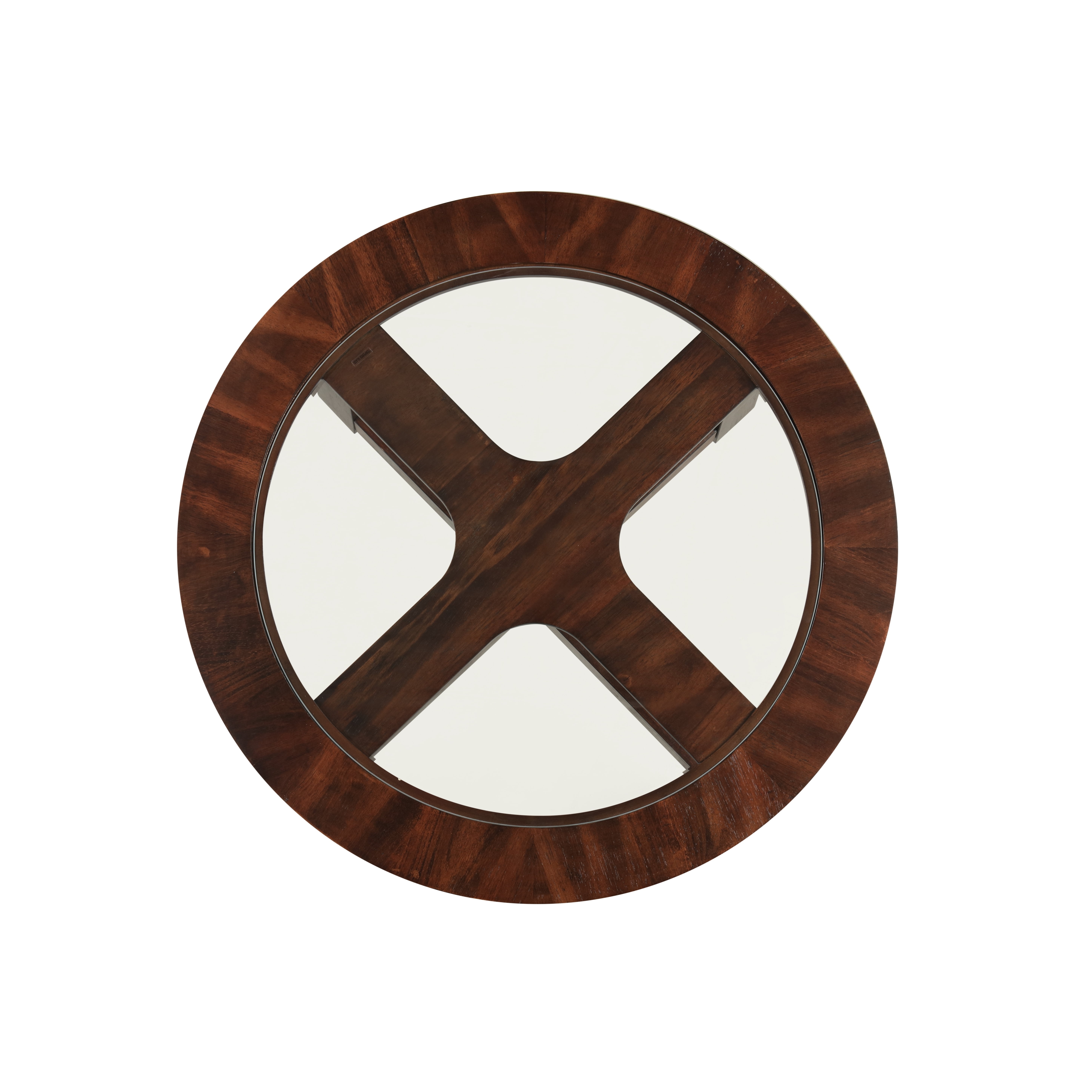 Roundhill Furniture Cylina Solid Wood Glass Top Round Counter Height Table Set