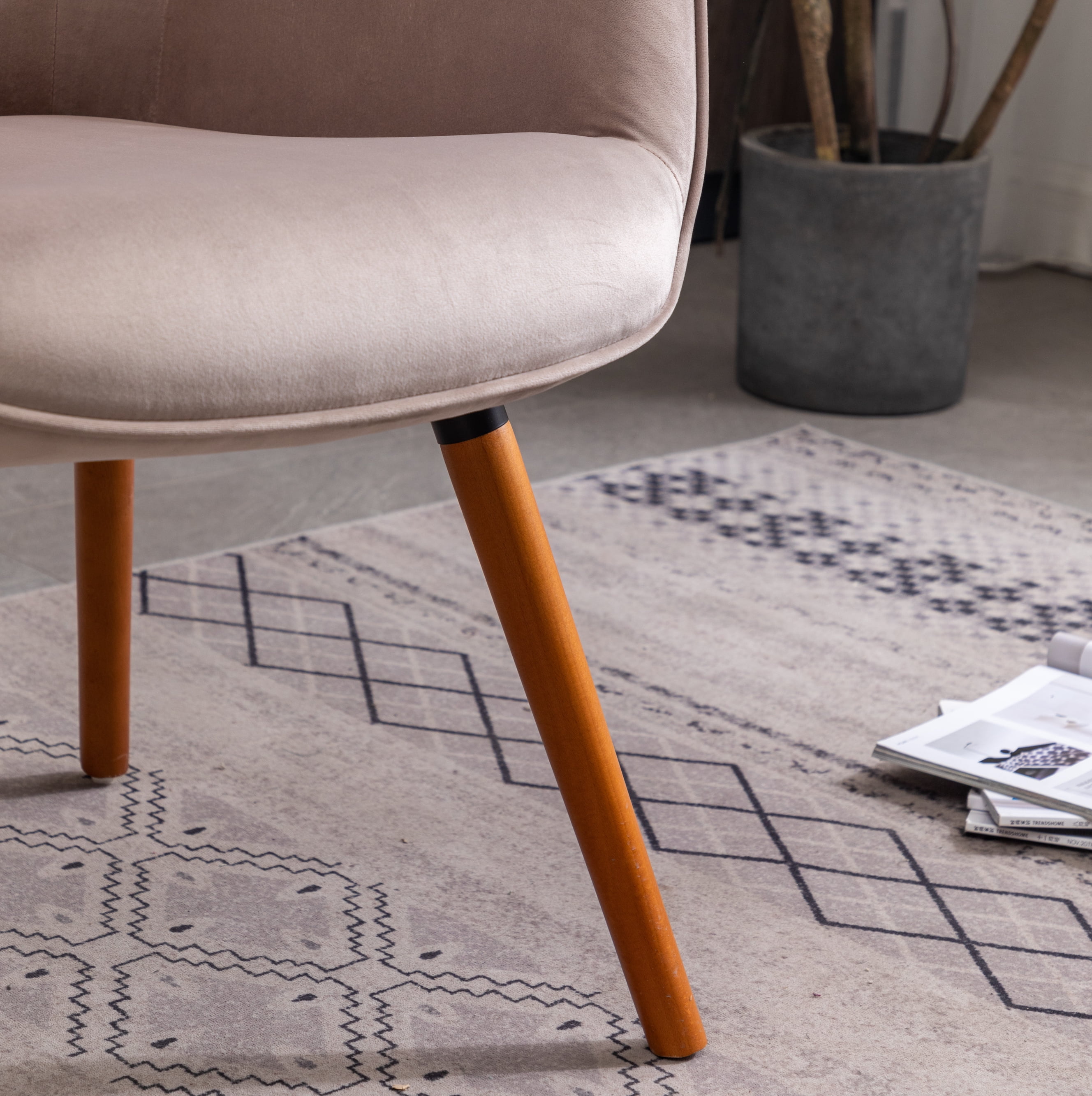 With soft foam, a solid wood leg, everything about this wingback style chair cries “well-crafted elegance.” The chair features button-tufted accents and angled, round wood legs. Crafted with soft velvet fabric over a solid rubberwood frame and is offered in a choice of available colors. Perfect for a foyer, office, or accent piece, you can offer this chair to your guests with confidence. Comfortable, yet formal, this chair offers a smooth look of comfort and professionalism.
