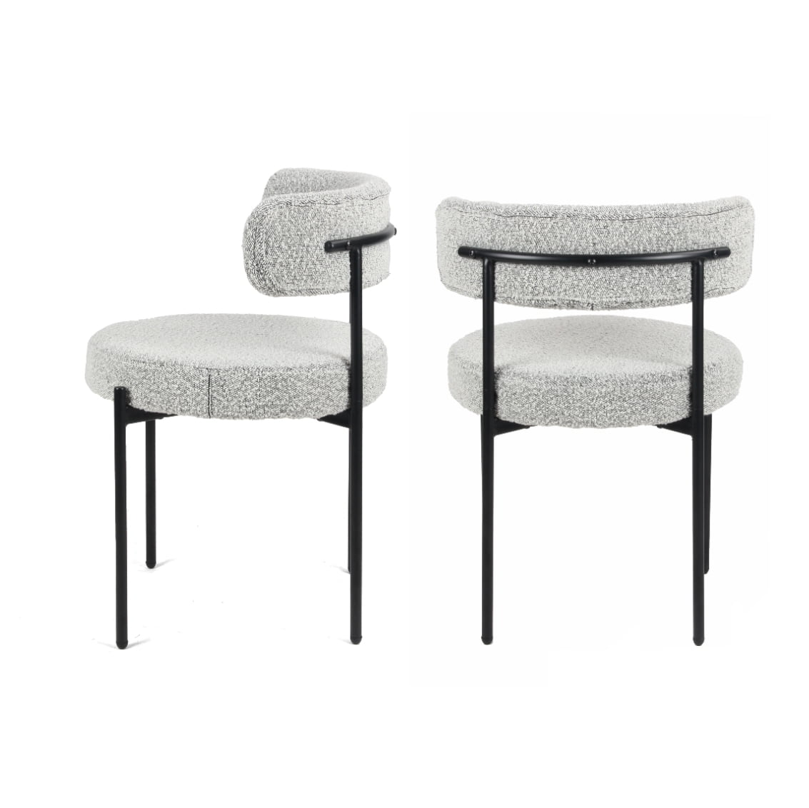 Durban 3-Pc Round Dining Set, Trestle Dining Table with 2 Boucle Chairs Introducing the Roundhill Durban 3-Piece Round Dining Set! This set includes an elegant round dining table and two modern Boucle side chairs, making it an ideal addition to your dining area. The dining table features clean lines with a minimalist, bright design. Its white-stylized trestle table base adds a touch of elegance, while the melamine tabletop ensures durability and minimalist appeal. Constructed with a Rubberwood base and a decorative laminate MDF top, this round table offers ample space for entertaining family and friends. The chairs, featuring robust iron legs and intricate stitching, are wrapped in rich Boucle fabric, providing embracing comfort that contours perfectly to your back. Don’t miss the chance to enrich your home with the exquisite Roundhill Durban 3-piece dining set! It’s available in two chair colors: White and Black White. This complete set includes one sleek round dining Table and two matching Chairs. The melamine tabletop features an exotic wood grain blends beautifully with the trestle base. Crafted with a rubberwood base and high-quality MDF tabletop, this table comfortably seats up to 2 people. The chair’s curved design provides comfort and support, while the textured boucle craftsmanship adds visual appeal. It features high-density foam filling and high-quality iron legs for stability. Floor protectors prevent scratches and scuffs. Some assembly is required. All parts and instructions are included. Kindly be aware that the color of the actual item may slightly differ from the photo due to variations in monitor display.