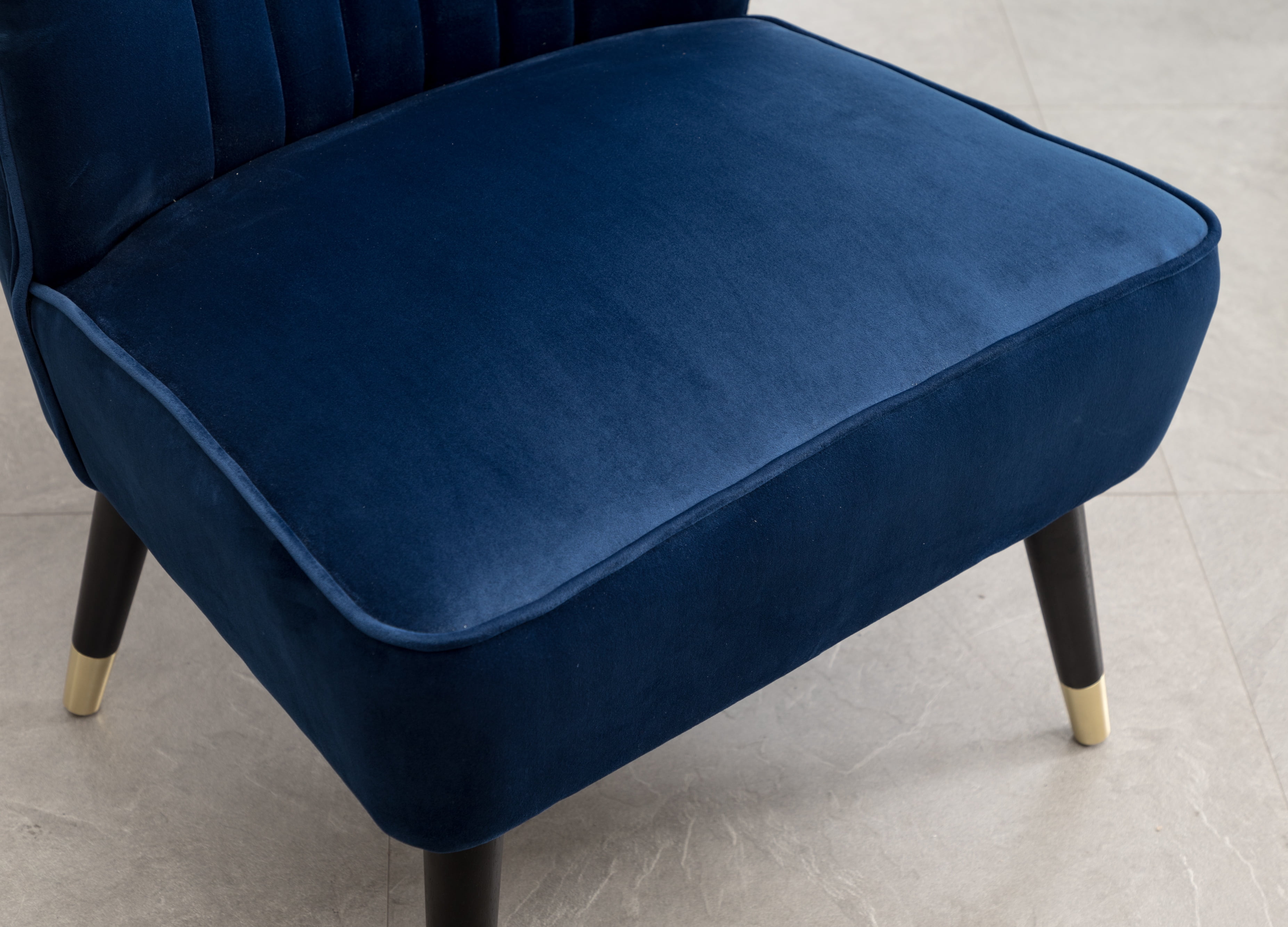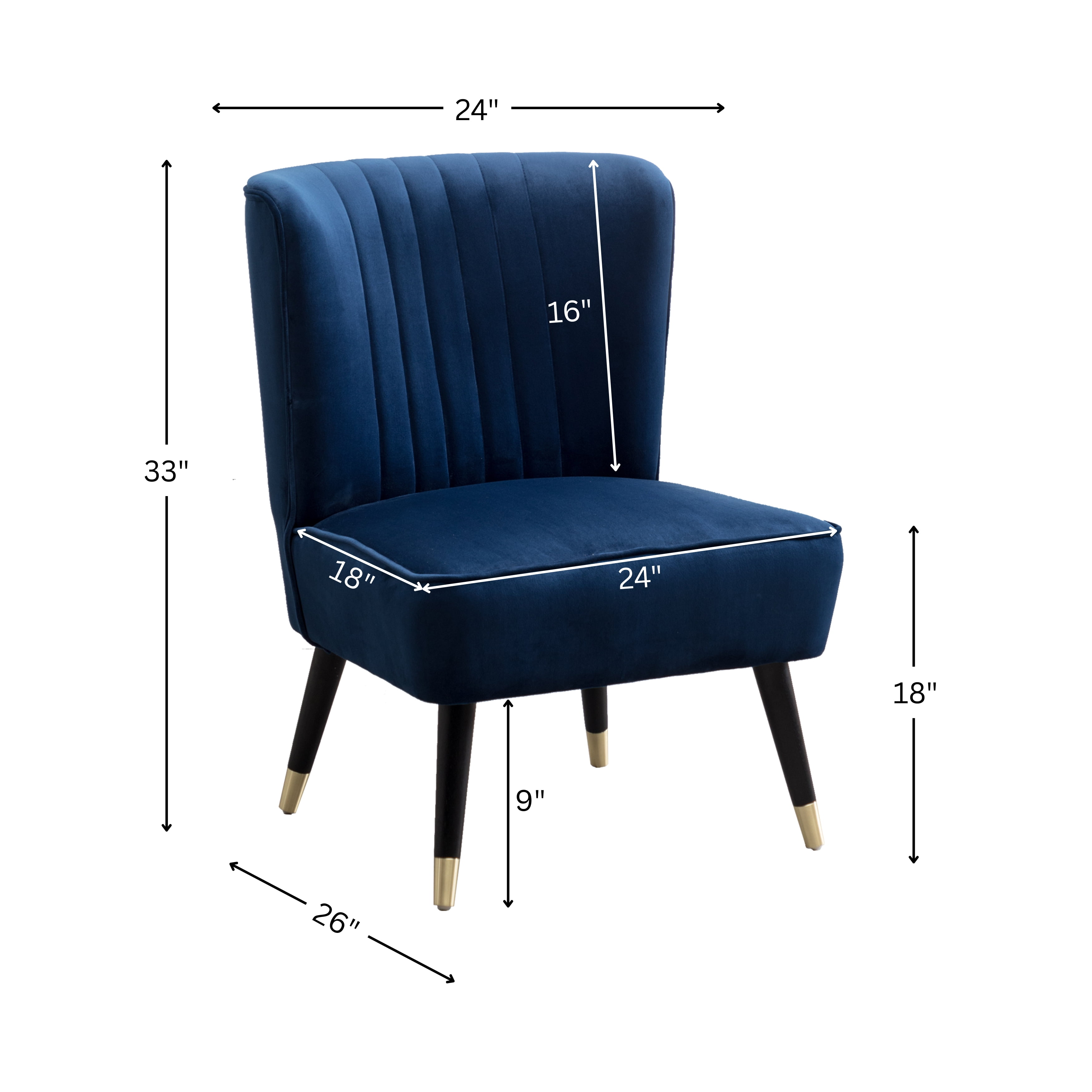 Elon Contemporary Velvet Upholstered Accent Chair, Blue: Thick layers of dense foam are used to pad the backrest and seat, upholstered with a lush velvet fabric in your choice of color The back and sides feature lined stitching and curved shape to add dimension to the design Solid rubberwood legs finished in a rich black color with the gold-tone metal electroplated on the end Dimension: 24″ W x 26″D x 33″H. Seat dimension: 24″ W x 18″D x 18″H Assembly needed. Photo May Slightly Different From Actual Item in Terms of Color Due to the Monitor’s Display