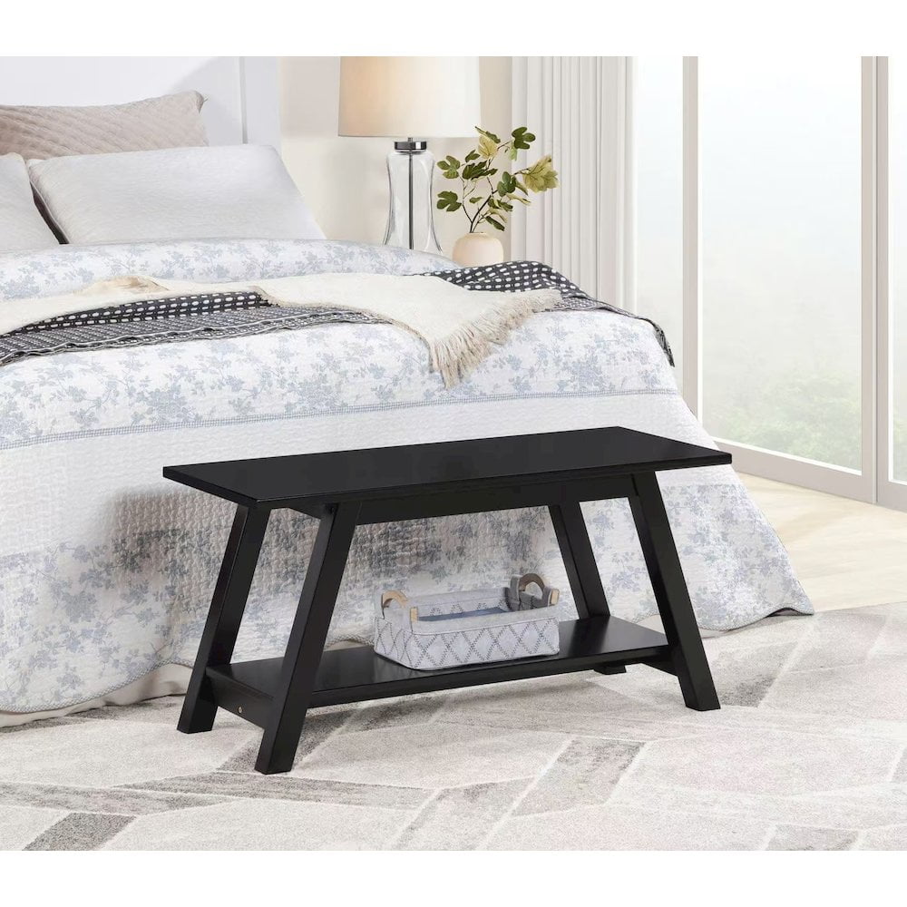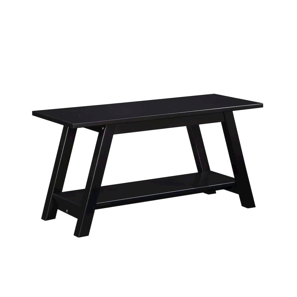 Elyz Solid Wood Bench with Shelf, 36.10-Inch Long Looking for a bench that’s as charming as it is functional Look no further than the Roundhill Furniture Elyz Solid Wood Bench with Shelf! This farmhouse-style bench is the perfect way to add a touch of rustic elegance to any room in your home. Whether you want to create a sleek storage nook in your bedroom or a welcoming spot in the entryway, this bench has got you covered. With its solid wood construction and tilted legs, this bench brings a modern and inviting feel to any space. The added shelf provides extra storage or display space, making it as practical as it is stylish. Plus, the sturdy construction ensures that this bench will be a part of your home for years to come. Get ready to elevate your home with this stylish and functional Elyz Bench! Available in 2 stunning color options, white and espresso.