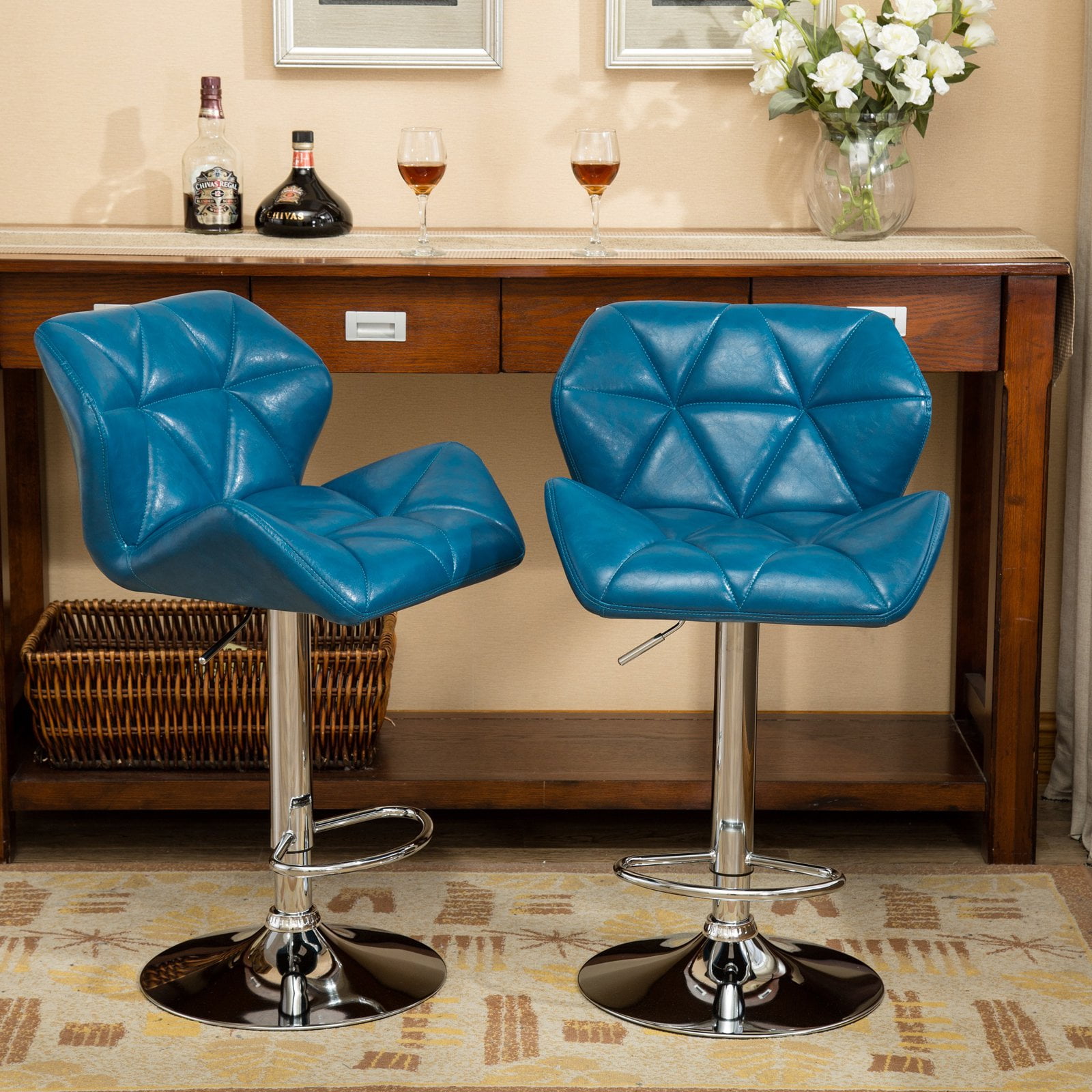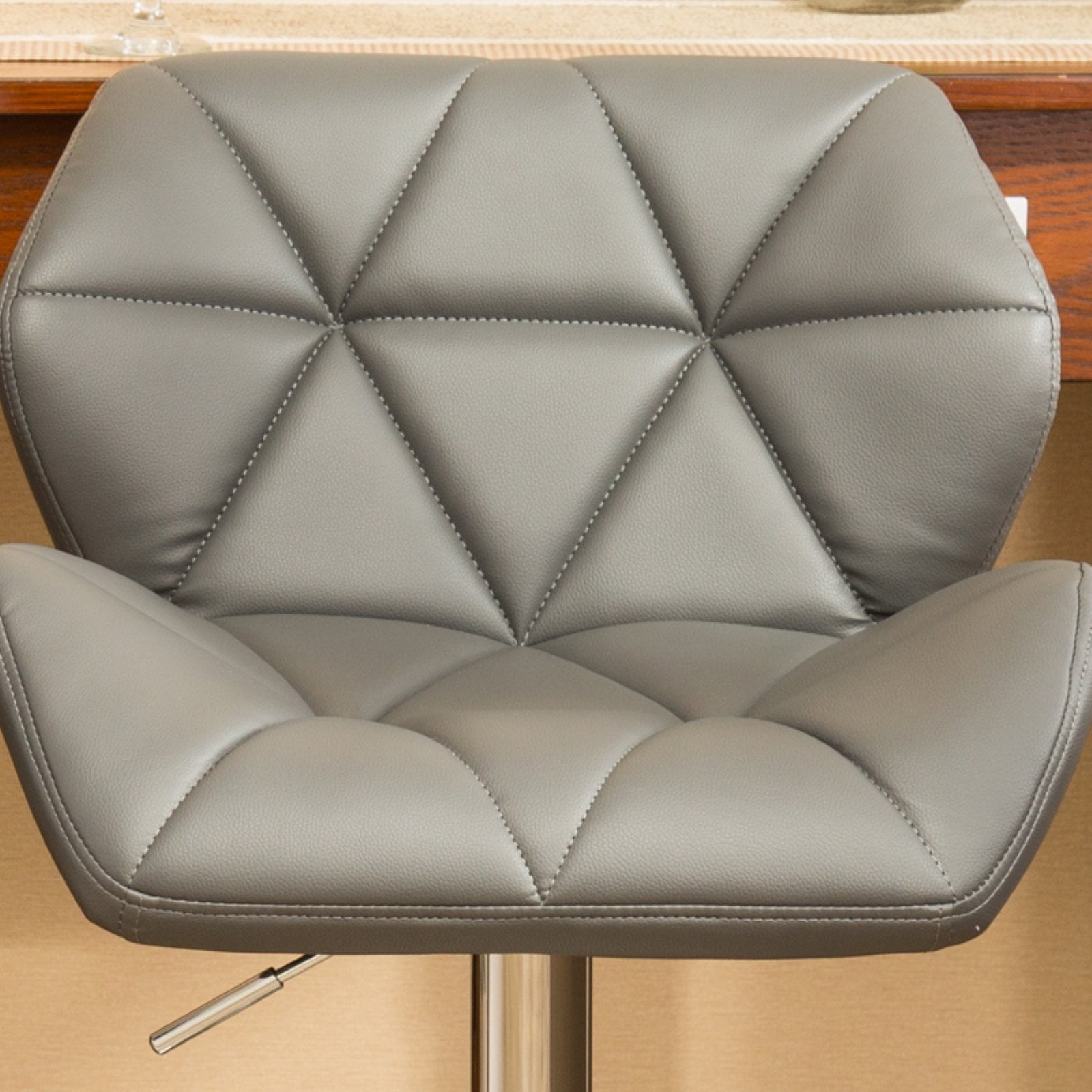 Diamond-tufted detail and a plush, padded seat and back make the Glasgow Contemporary Tufted Adjusted Bar Stool stylish and comfortable. This stool has a sturdy chrome base with 360-degree swivel. The swirling seat with easy gas-lift height adjustment offers versatile seating. The polished chrome disk base has a built-in footrest for stylish comfort. Your choice of available finish options. Features : Finish: Gray Materials: Faux Leather, Metal Diamond-tufted swiveling seat stool with gas-lift height adjustment PU leather seat in variety colors. Built in foot rest for extra comfort, 16.5″ DIA big base gives more stability. Photo may slightly different from actual item in terms of color due to the lighting during photo shooting or the monitor’s display Specifications : Stool Dimensions : 20.5″ x 20.63″ x(35-43.25)”H Weight Capacity : 200 lbs