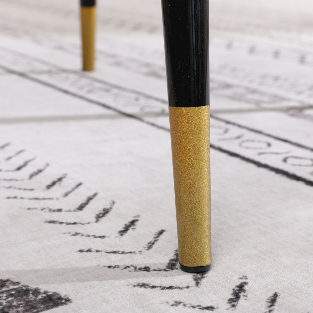 Mid-century inspired dining chairs in set of 4 Thick layers of dense foam are used to pad the backrest and seat, upholstered with a lush velvet fabric in your choice of color Black finished angled legs are made from metal for long-lasting and feature a gold tone finish in the end that brightens up the look Dimensions: 17.25″W x 22.25″D x 33.25″H. Seat: 18.5” H x 17.5” W x 16” D Some assembly required. Photo may be slightly different from the actual item in terms of color due to the monitor’s display
