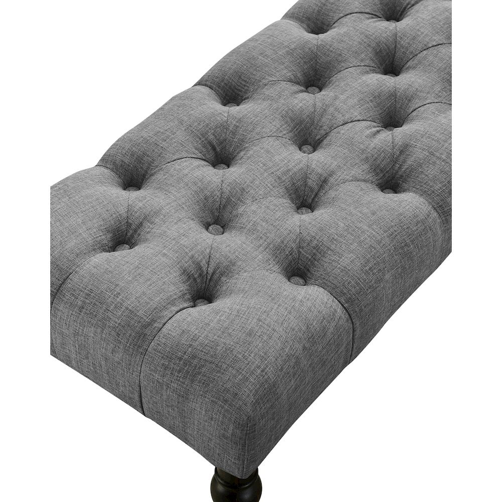 Roundhill Furniture Leviton Fabric Tufted Turned Leg Dining Bench in Gray