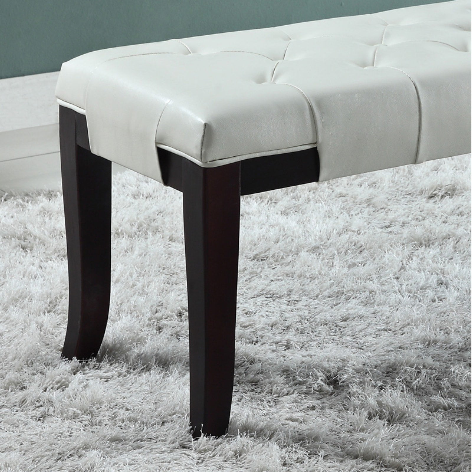 Roundhill Furniture Linon Leather Tufted Bench, White