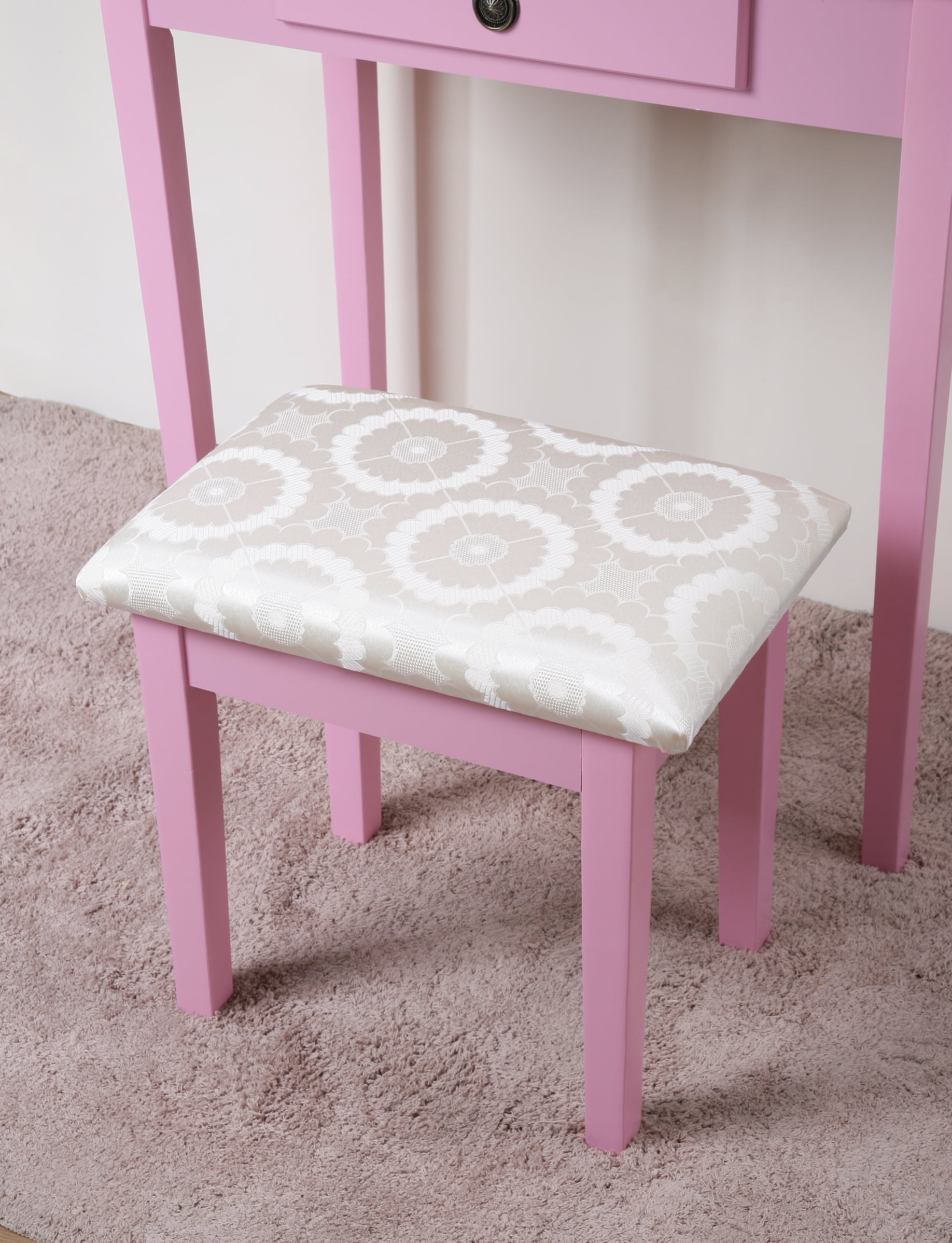 Roundhill Furniture Moniya Wood Vanity Table and Stool Set, Pink