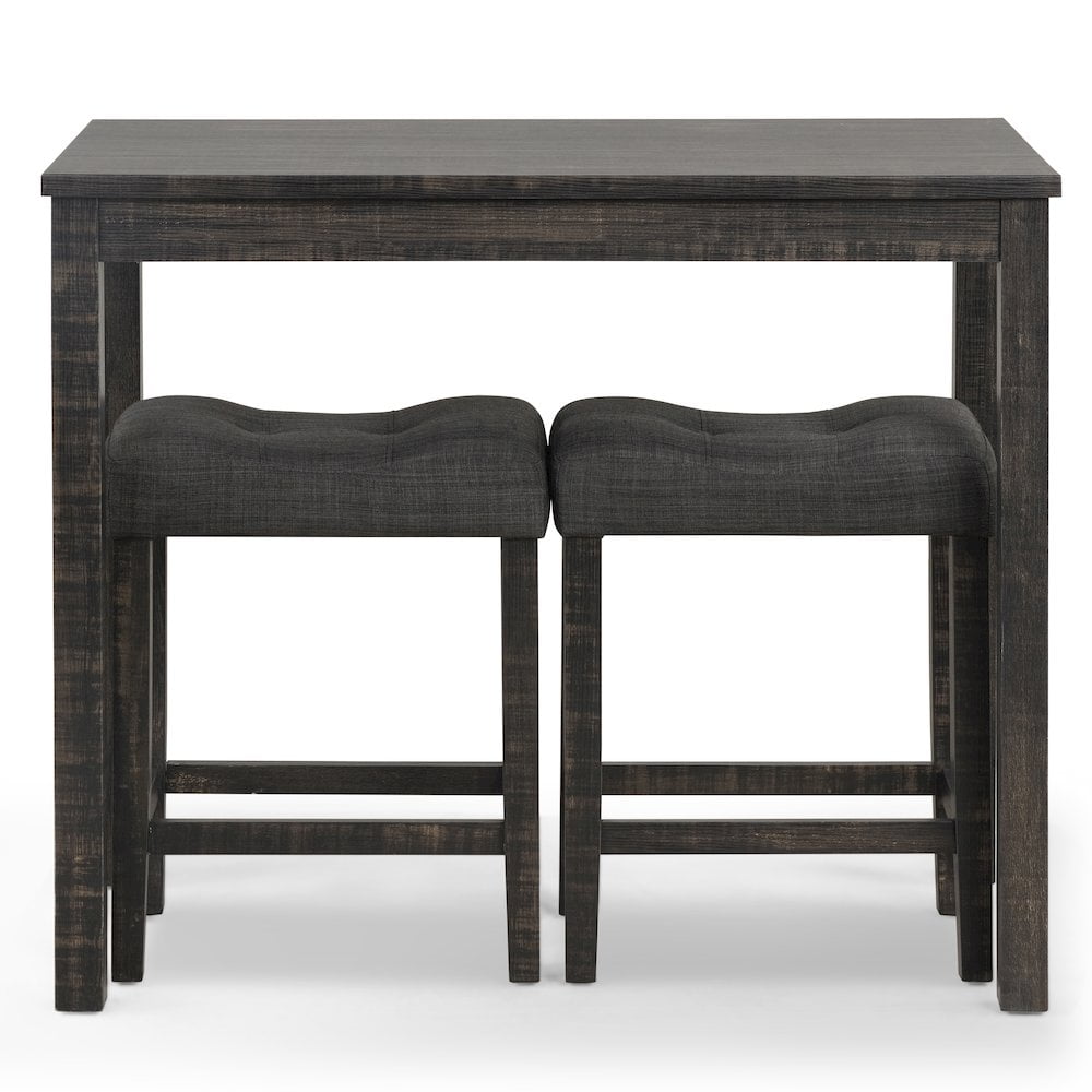 Make the most of your dining space with the Sora Wood 3-Piece Counter Height Dining Set. This space-saving set includes a rectangular counter height table and two saddle stools. A taller height makes this dining set comfortable for both seated guests and those who walk up to chat or help with homework. The stools are upholstered with soft fabric. The dining set is available in gray and taupe finish. Features : Finish: Gray Materials: MDF, Rubber Wood, Fabric, Foam, Paper The counter height dining set includes a table and two matching stools. Available in gray and taupe finish Button tufted saddle stools with contoured seat and footrests, upholstered with solid color fabric with thick foam padding The table is constructed of high-quality MDF with solid rubberwood legs, finished by the 3D wood grain paper. The leg of the stools is made of solid rubberwood Some assembly required. Photo may slightly different from Actual Item in Terms of color due to the Monitor’s display Specifications : Dining Table Dimensions : 41.5″W x 22″D x 36″H ; (Table top thickness) 0.98″ Stool Dimensions : 18.5″W x 11.8″D x 24″H Seat Dimensions : 18.5″W x 11.8″D x 4.7″H Weight Capacity : 200 lbs