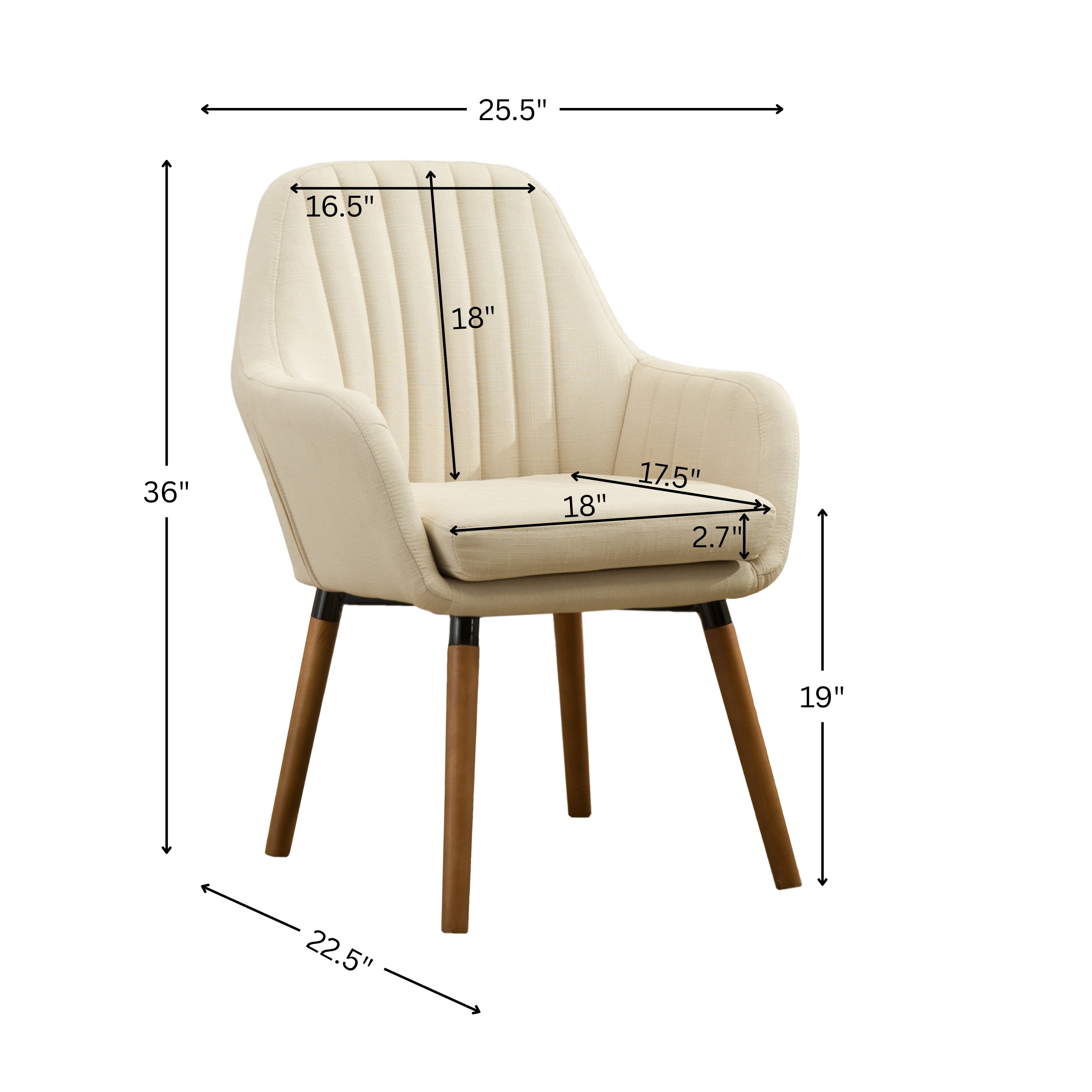 Frame constructions have been rigorously tested to simulate the home and transportation environments for improved durability. Corners are glued, blocked and stapled. High-quality plush high-density foam cushioning is upholstered in tan color Solid wood frame legs come in a light brown finish Deep tuck-pleating design and extra thick padding is supremely comfortable Dimensions: Chair: 25.5″W x 22.5″D x 36″H, Seat: 18″W x 17.5″D x 19″H, Back 18″H, Top of chair back 16.5″W Some assembly required. Photo may be slightly different from the actual item in terms of color due to the monitor’s display