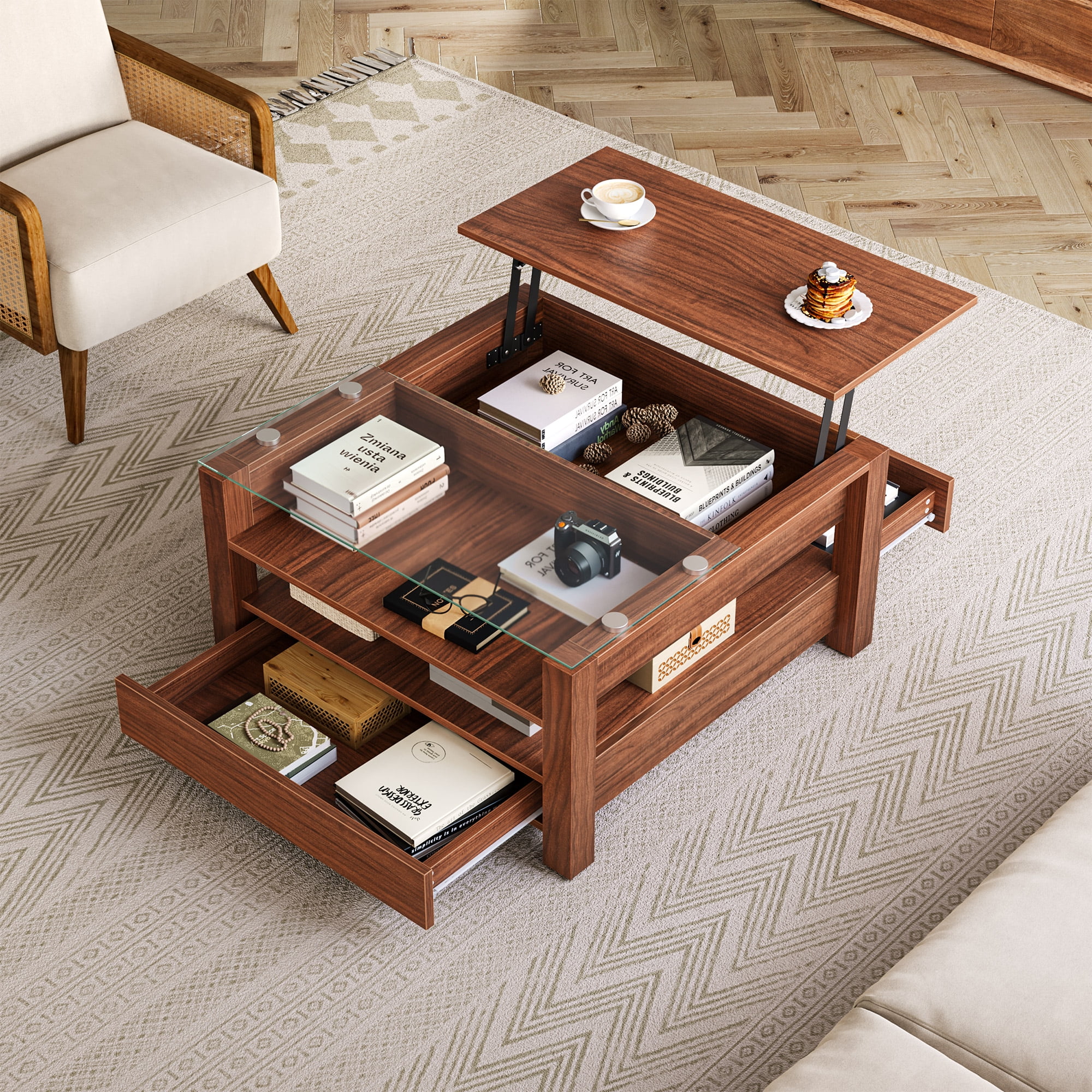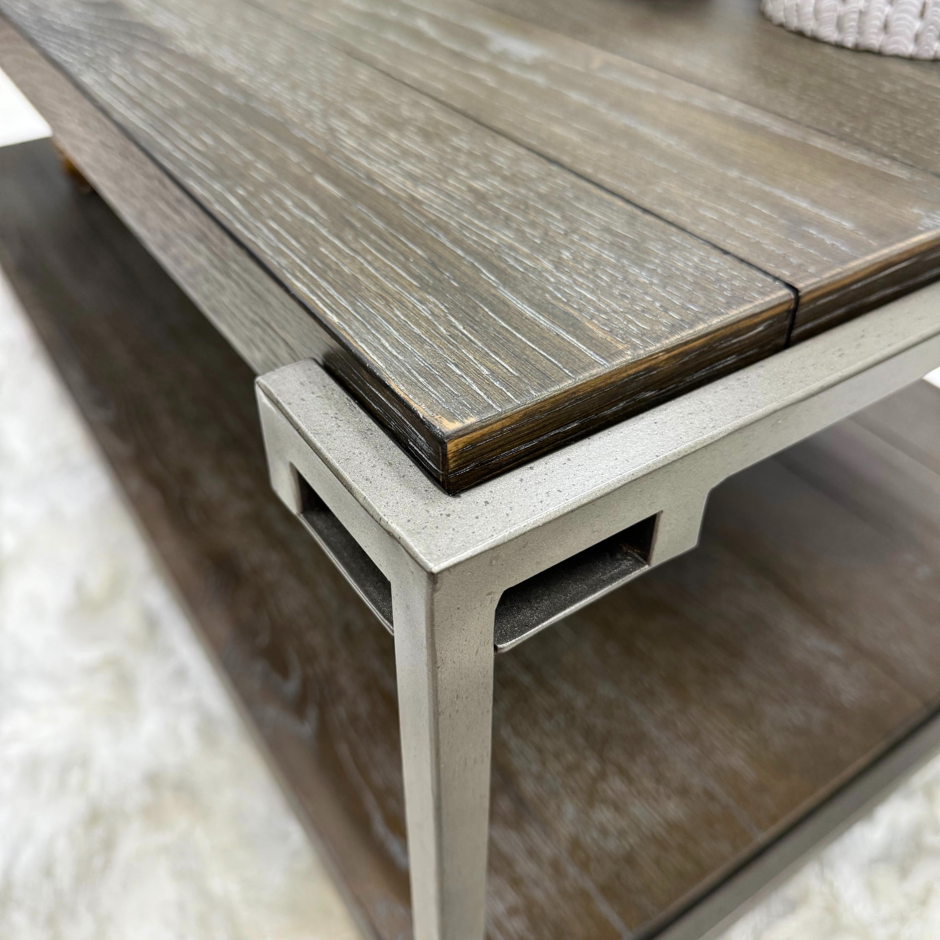 Exquisite Craftsmanship and Durability: Constructed of hardwood solid and oak veneer with metal framework. Experience durability and striking aesthetics in this captivating coffee table. The aged graphite finish adds a touch of elegance and sophistication to your living space. Enjoy convenient mobility with the coffee table’s removable casters, allowing easy movement and repositioning. Stay organized with additional storage and display space, perfect for showcasing decorative accents or storing everyday items. The metal framework not only adds visual interest but also enhances the table’s stability and sturdiness. Dimensions: 50″W x 26″D x 18″H