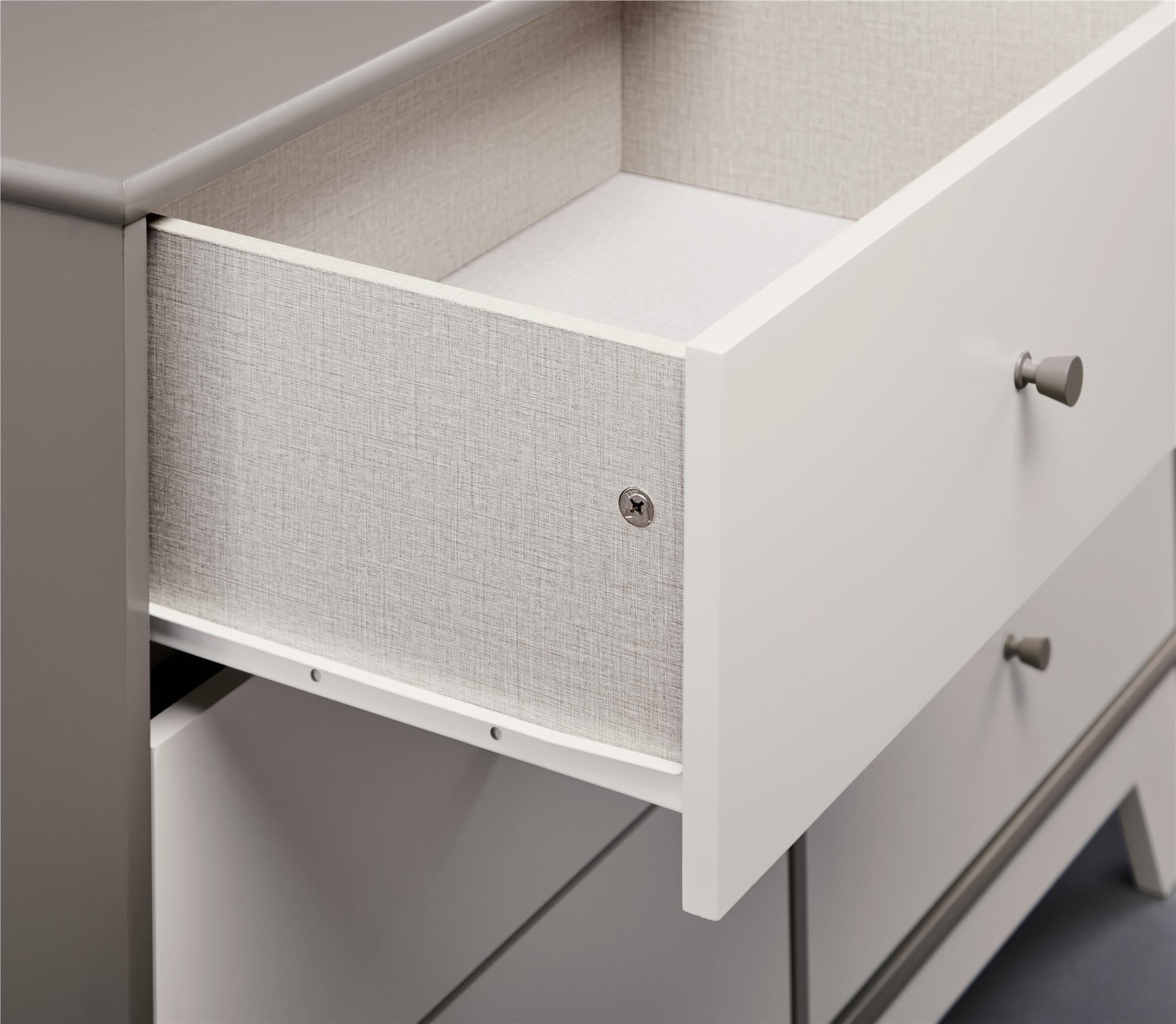 Add a modern look to your child’s bedroom with the Little Seeds Rowan Valley Flint 6 Drawer Dresser. Made from sturdy MDF, the non-toxic painted finishes contrast with a dark gray color with brown undertones on the chassis and a light gray color on the drawer fronts. The solid wood, angled feet give the Dresser a stable base and adds a decorative touch. The metal slides on each drawer have built-in stops for safety and can withstand years of use. Keep your child’s sweaters, folded shirts and pants, and seasonal coats and gloves stored away and organized as they grow. This 6 Drawer Dresser can convert to a changing table by adding our optional changing table topper (sold separately). The 6 Drawer Dresser meets or exceeds the CPSIA Juvenile testing requirements and comes with a wall anchor kit to ensure your child’s safety. The Little Seeds Rowan Valley Flint 6 Drawer Dresser ships flat to your door and requires assembly upon opening. Two adults are recommended for assembly. Once assembled, the Dresser measures to be 32.625″H x 47.625″W x 17.875″D. Little Seeds not only creates this and many more on trend baby to teen furniture pieces, we also partner with various environmental protection programs to protect pollinator and other wildlife habitats for future generations.