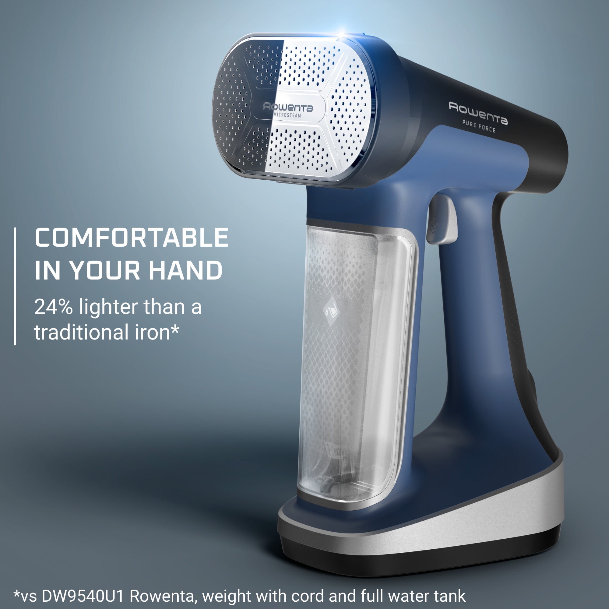 Versatile 2 products in 1: Steam Force 2 in 1 combines powerful steam output with an XL soleplate so you can steam vertically and iron horizontally with just one product. The power of an iron into the handiness of a steamer. Time Saving: with XL soleplate 42% bigger save time versus classic handheld steamer from your daily routine with Rowenta’s power and 330 steam holes for super strong steam output and ultra fast heat-up ready in just 15 seconds. Long Lasting Power: crystal clear, easy-to-refill 7oz removable water tank provides up to 12 min of continuous steam output , helping you power through longer steam sessions. Convenient Digital Display: Rowenta Steam Force 2-in-1 provides 5 steam settings for effortless care of all fabrics, from t-shirts and delicates to pants and coats, even jeans! For stubborn wrinkles, utilize the steam boost for up to 300% more steam output. Lightweight, Safe, and Stylish: Enjoy an 8.5-ft cord and a 24% lighter than a traditional iron with auto-off safety features, blending sophistication with peace of mind for your garment care.