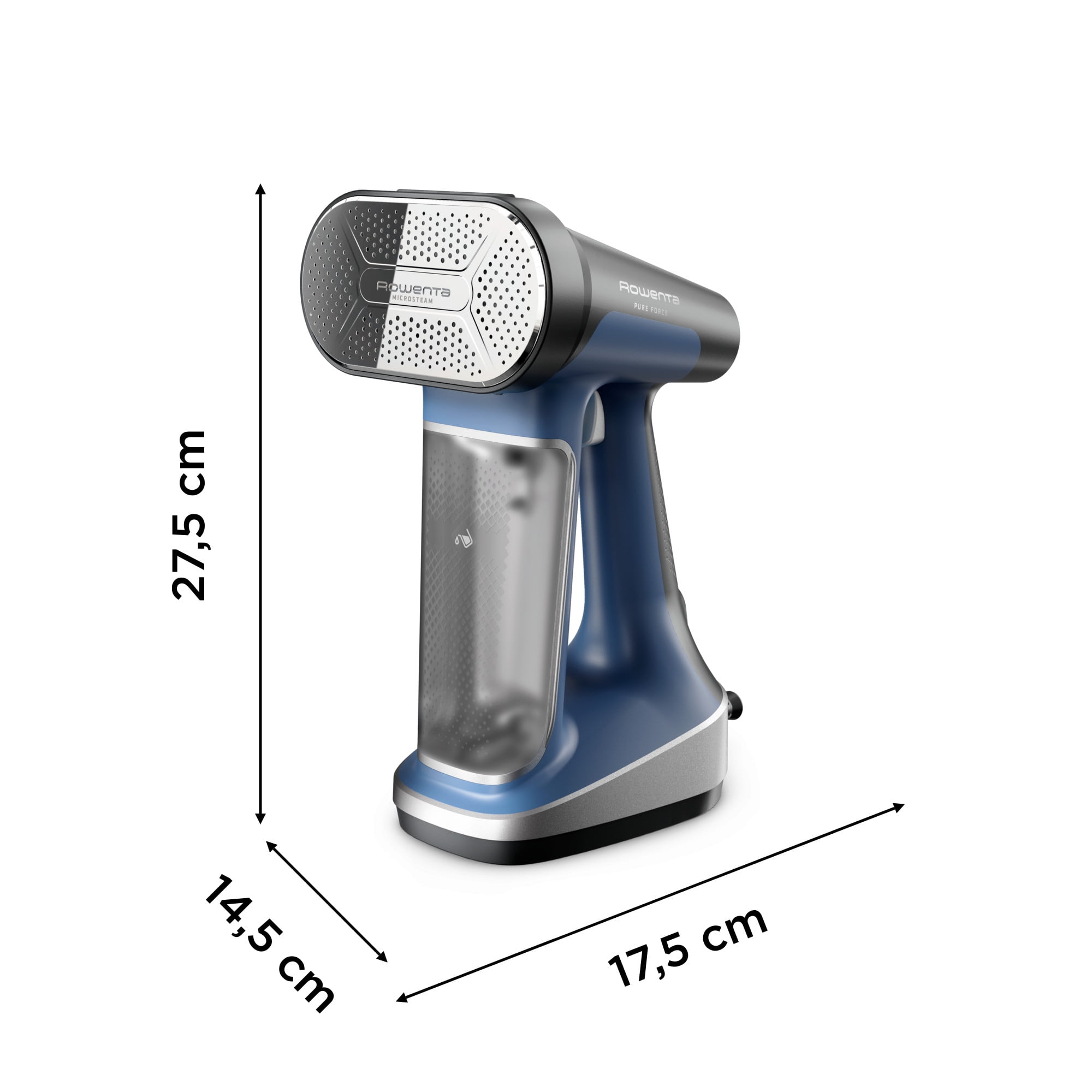 Rowenta Pure Force 2-in-1 Handheld Garment Steamer and Iron for Clothes, 1875W, 15-Second Heat Up, 7.1 Oz Water Tank, 12-Minutes of Continous Steam, Auto Shut-off, Blue DR8820U1