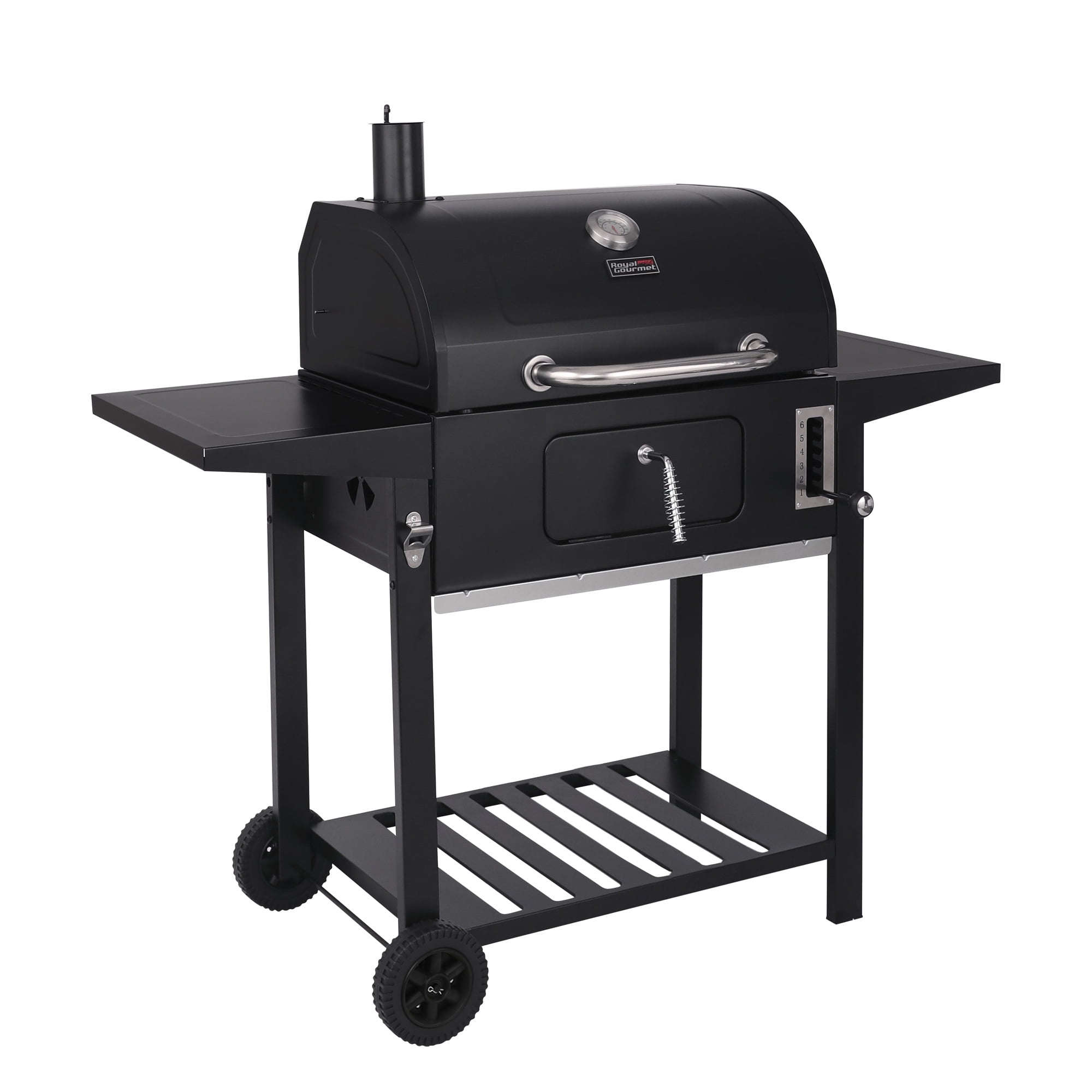 Enjoy the delicious aromas your food will be sending out from our Royal Gourmet 24-Inch Charcoal Grill. You will have ample space to grill anything with its 391 square inches primary cooking area, plus a secondary cooking space of 201 square inches. This charcoal grill features porcelain-enameled cooking grates with a heavy-duty lid. Temperature fluctuation is clearly visible on the lid-mounted thermometer, and you will not overcook. The charcoal pan has adjustable mechanism up to six heights by lifting the handle. In this way, it can use heat more efficiently, and make your food evenly cooked. Open the front easy-access door to tend to coal or stoke fire. The ash tray covers entire grill bottom to collect flipping ashes for easy cleanup. Keep your tools organized with two fixed side shelves and the bottom rack. With complete features, this classic charcoal grill makes your grilling experience top notch, and lets you feel proud of the delicious meals you cook for your family members.