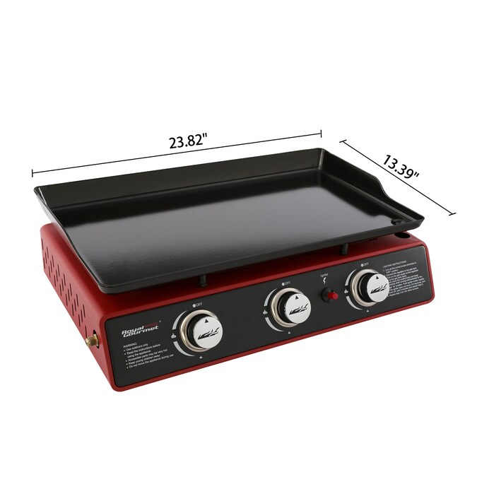 Stop manhandling those heavy and bulky backyard griddles, show off as a grill master with Royal Gourmet® PD1301R 24-Inch Portable Table Top Gas Grill Griddle for your family outings. Spacious space is perfect for frying rice, eggs, hash browns, French toast, bacon and hamburgers. The portable design provides added versatility and convenience for picnics, tailgate parties, camping or night BBQ on the patio. Protect your grill well with our specially provided Royal Gourmet® grill cover.