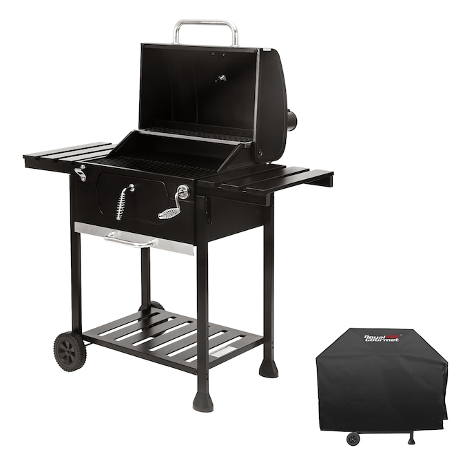 - 24-inch Charcoal Grill with cover offers a total of 490 square inches cooking area, holding up to 22 burgers at one time.