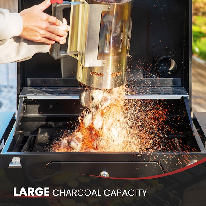 - Front charcoal access door with a cool-touch handle enables you to add charcoal easily during the grilling time.