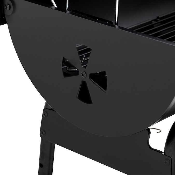 • Heat Control: Close the side air vent completely that cuts off the oxygen flow to help extinguish coals and adjust the smoke stack for extra heat control.