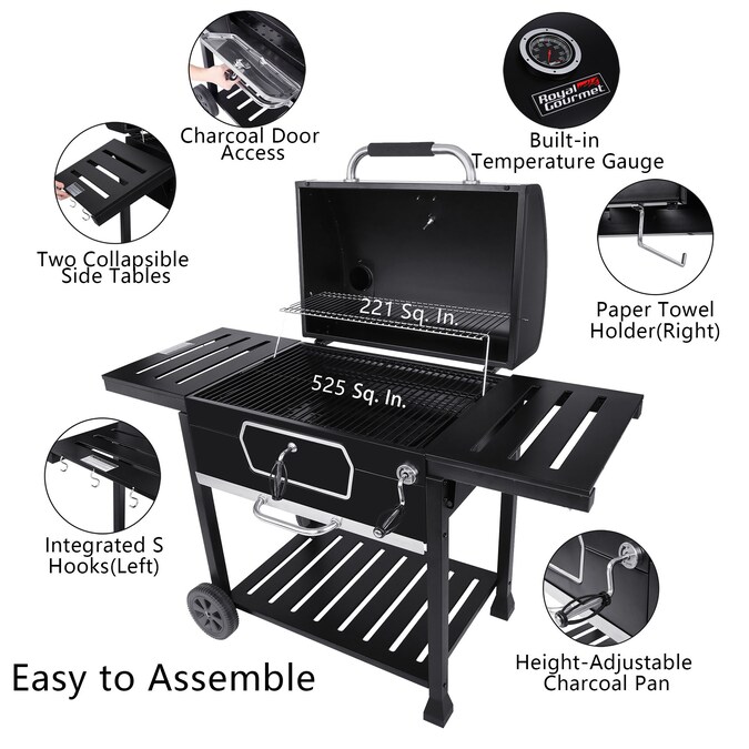 - Easy Temperature Control: Adjust heat with the height-adjustable charcoal pan, holding up to 3.4 kg/7.5 lb of charcoal.