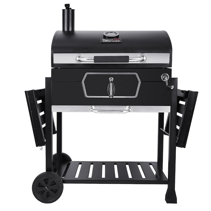 You are invited to our grill party as the best cooking star with our Royal Gourmet Deluxe 30-Inch Charcoal Grill. This charcoal grill boasts ample space to grill anything on the spacious cooking area. With the lid thermometer to monitor temperature fluctuation in real-time, smoky flavor and beautiful charred surfaces from hot grill grates are hallmarks of your grilling techniques. Grilling accessories are perfectly organized on two side tables and bottom shelf, you can take it easy and cook like a pro what with all utensils within arms reach. Propose a toast with your friends and family and start to taste the well-cooked food you provided.