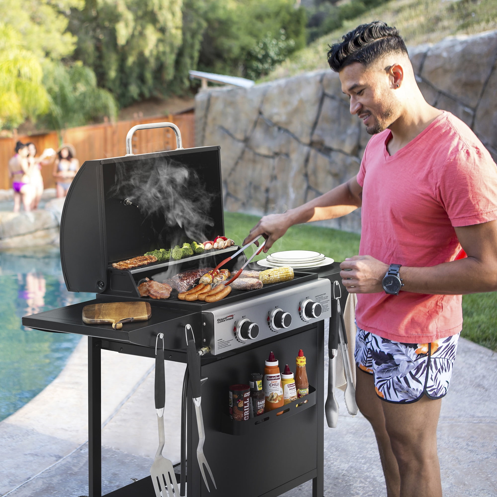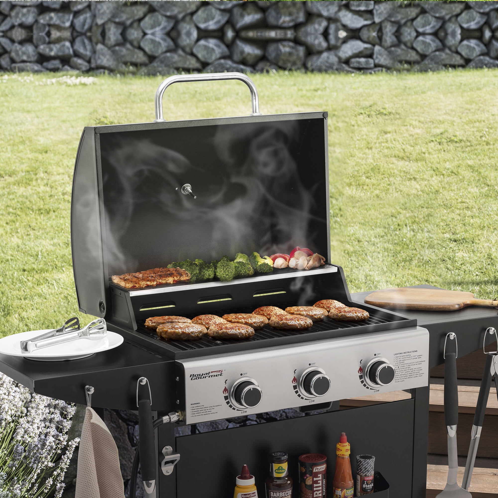 Royal Gourmet 3-Burner BBQ Gas Grill with Front Spice Rack, Two Side Shelves and Hooks, 30,000 BTU, GH3001H