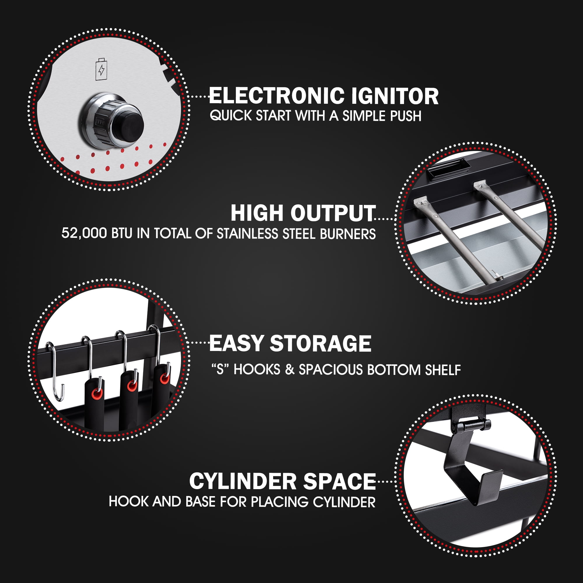 - Ignition System: Reliable electronic ignition system facilitates a fast spark at every push.