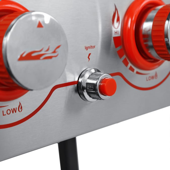 - The electronic ignition system on the stainless steel control panel reliably sparks with every push.