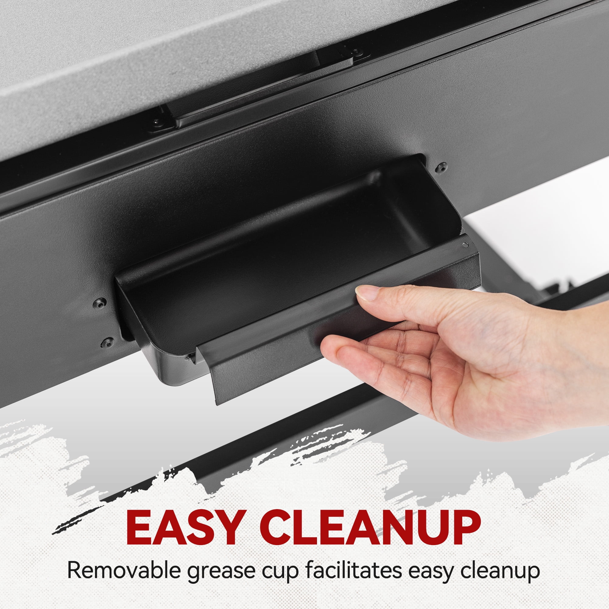 1.Powerful Performance: 4 independently controlled stainless steel burners generate a total of 52,000 BTU (13,000 BTU each) performance to deliver even heat and high-to-low heat control. 2.Sufficient Cooking Surface: With sufficient grilling capacity, the flat griddle top offers 784 sq. in. cooking space to satisfy the need of large events or outdoor activities. 3.Quick Startup: Turn the control knobs to the highest position, and simply press the electronic ignitor button on the stainless steel control panel to start up the ignition instantly. 4.Easy Cleanup: This griddle makes the cleanup a breeze with a detachable grease cup on the left side that collects grease residues and facilitates hassle-free cleanup. 5.Lockable Caster: Press the brakes on to lock the caster wheels for added stability and press them off to move the grill around the patio or backyard with ease. ·Recommended grill cover: Royal Gourmet CR6008