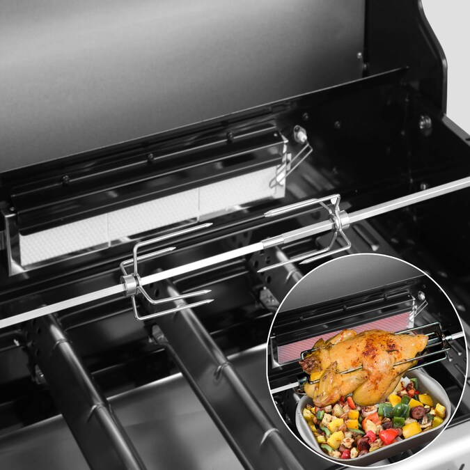 - Rotisserie Kit with Motor: Slow-roast a crispy brown whole chicken but juicy and tender meat inside by the strong power of rear burner for high-heat searing or slow spit roasting, which offers added and unparalleled versatility during cookouts.