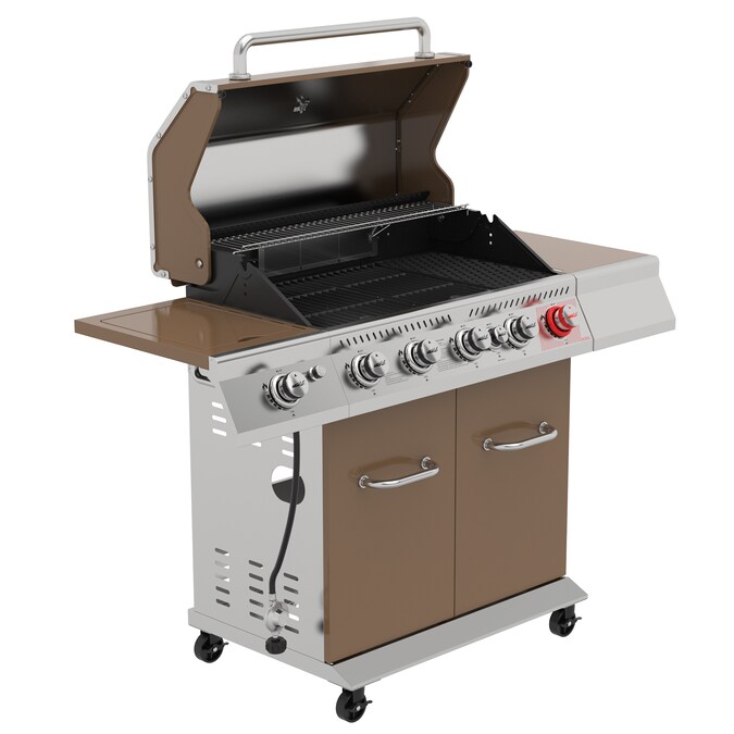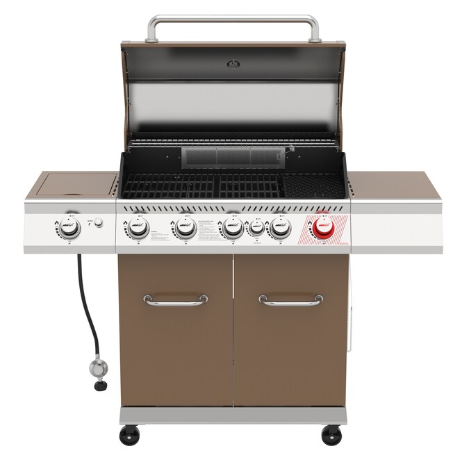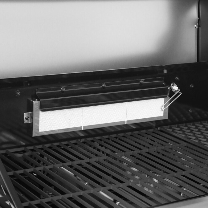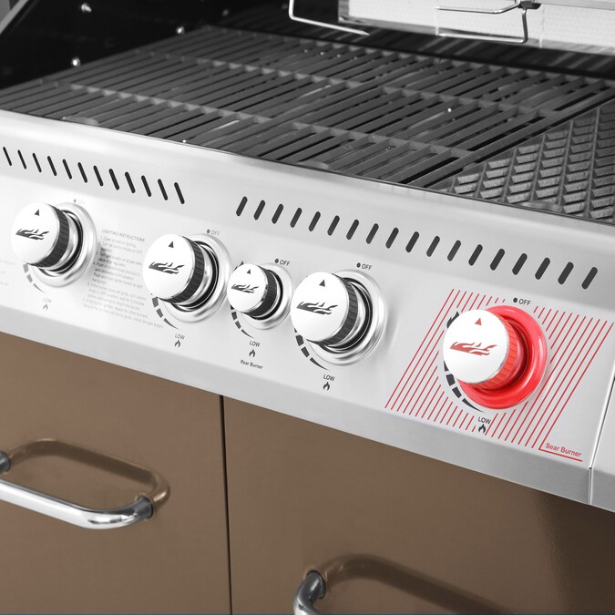 - Diamond-shaped cast iron cooking grates are specially designed for scorching and sizzling steaks with sear burner; lidded side burner is ideal for cooking side dishes and sauces; powerful rear burner is perfect for rotisserie chicken.