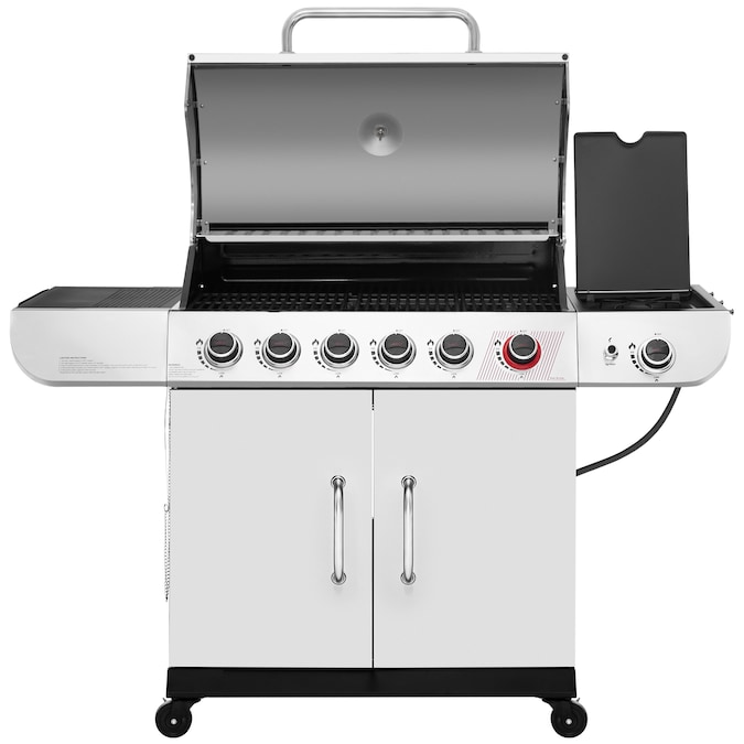 - Cabinet Style 6-Burner Gas Grill with 552 square inches of primary cooking space and 147 square inches on the warming rack, holding up to 24 burgers—ideal for large gatherings.