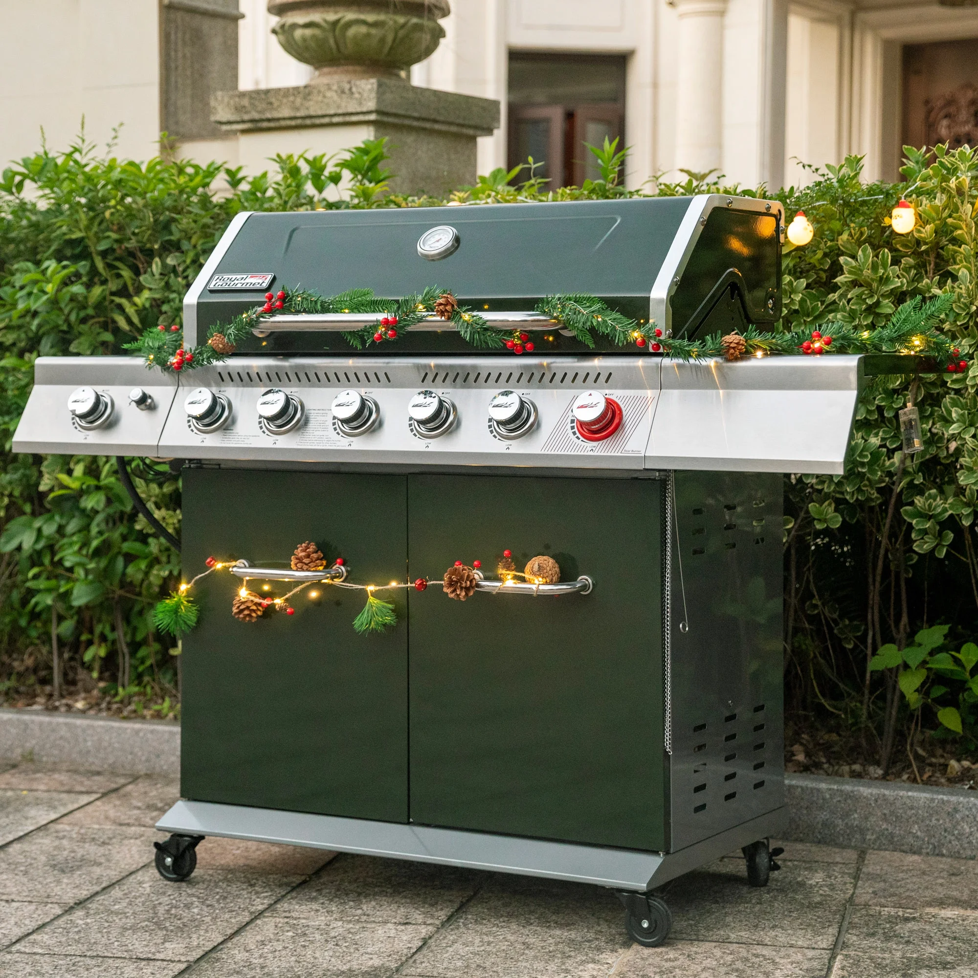 Royal Gourmet GA6402L 6-Burner BBQ Liquid Propane Gas Grill in Olive Green, with Sear Burner and Side Burner