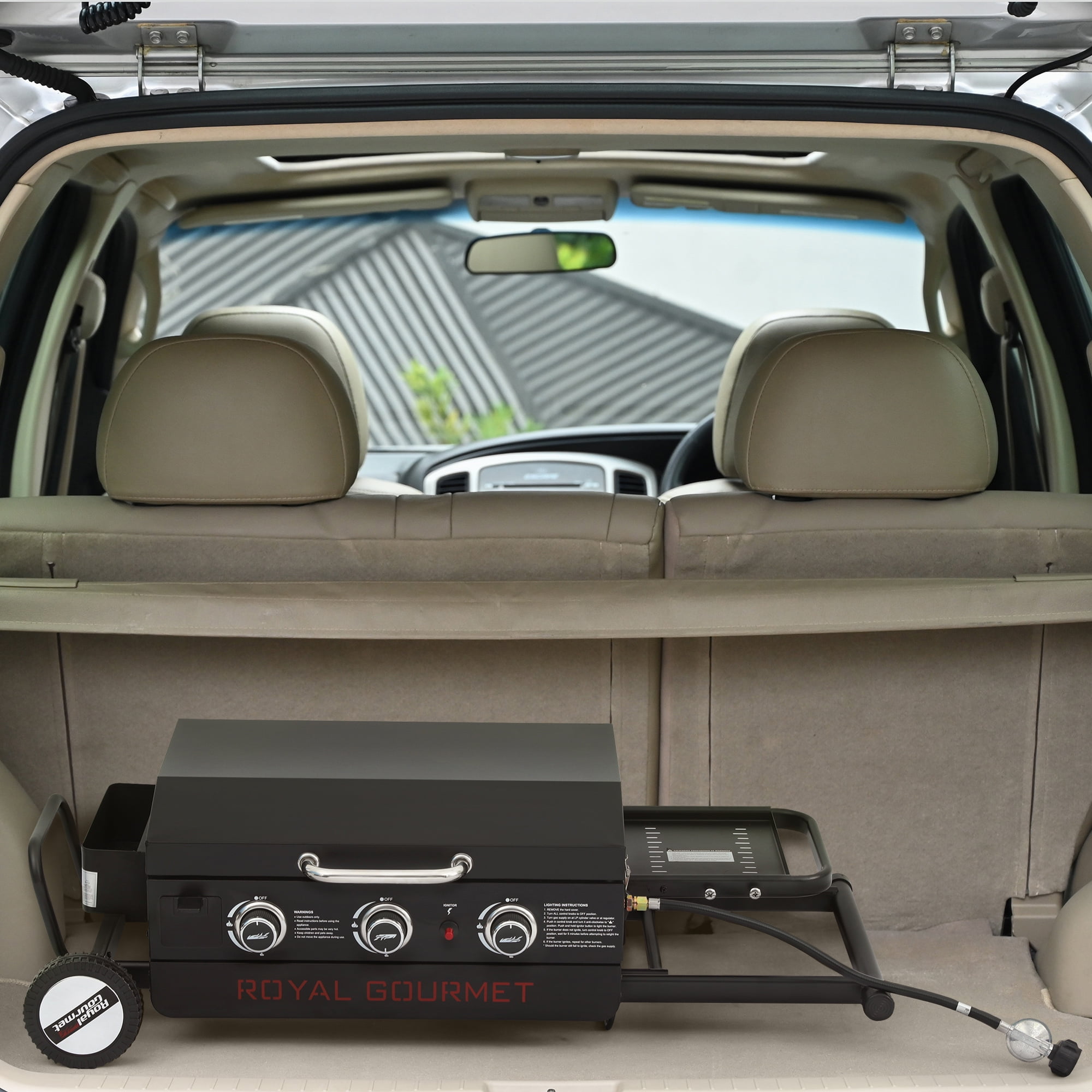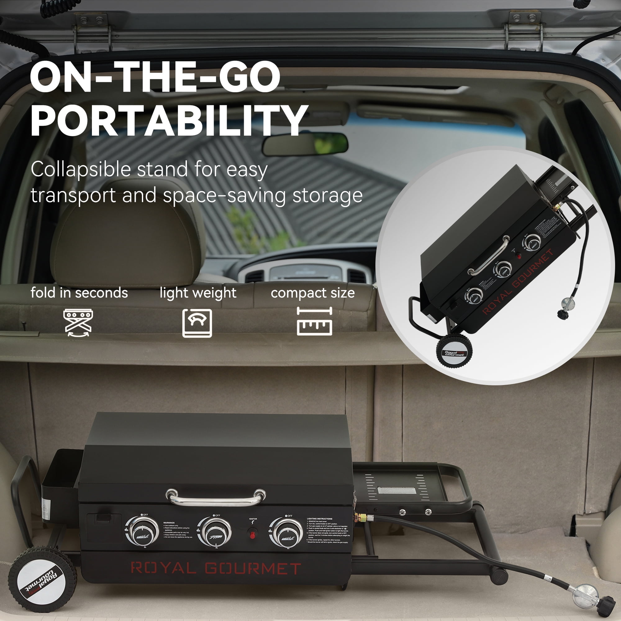Royal Gourmet PD3001 23-Inch Portable 3-Burner Gas Griddle with Collapsible Stand, Portable Griddle with Side Shelf