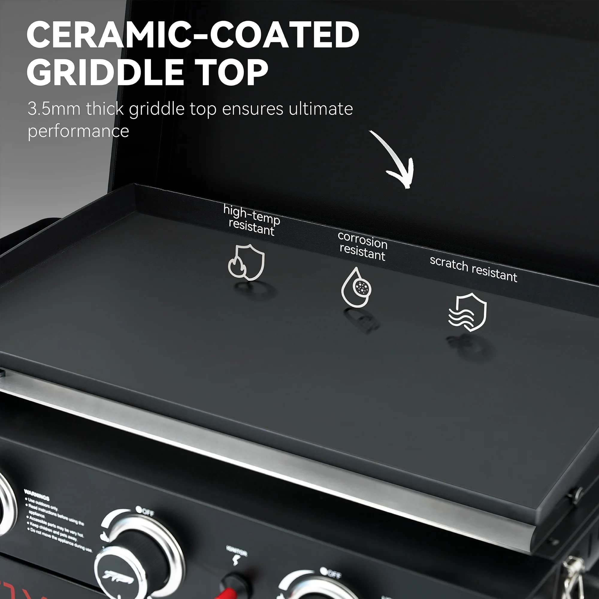 1.Ultimate Portability: This griddle boasts collapsible legs for easy transport and ultimate on-the-go portability. With the legs folded down, you can easily put this griddle in your car or push (or pull) it with a side handle, taking this griddle anywhere you like. 2.Space-saving Storage: Aside from outstanding portability, the collapsible stand design also effectively saves storage space. You can fold it down in seconds for easy storage, no more worrying about your griddle taking up too much space. 3.Spacious Cooking Area: With a spacious 314 sq. in. cooking area, you can cook up to 8 burgers at once. High-quality ceramic-coated griddle top delivers high temps and maintains even heat for impressive and consistent cooking results. 4. Ceramic-coated Griddle Top: Engineered with state-of-the-art technology, our ceramic-coated griddle top boasts better high-temperature resistance, corrosion resistance, and scratch resistance. Note that the griddle top should be seasoned before use. 5.Safe & Easy Transportation: During transportation, 2 lid latch buckles ensures firm closure of the lid for enhanced security, avoiding the risk of accidentally popping open, while a latch buckle secures the cook box and folding stand for safer transportation. 6.High Performance: This griddle comes with 3 stainless steel burners for long-lasting performance, each generating an output of 8,500 BTU. With a total cooking power up to 25,500 BTU, the powerful burners will cater to you with fast, robust and even heat. 7.Extra Prep Space: A side shelf on the right side provides a perfect solution for positioning plates or ingredients, while two built-in hooks are ideal for hanging rags, thus keeping your cooking essentials within arm’s reach. 8.Left Spice Rack: On the left, a spice rack is specially designed for placing your various seasonings or condiments, which not only allows for easy access to your cooking essentials, but also keeps your workspace neat and organized Color: Black Material: steel Product Size: 42.72” L x 23.82” W x 36.22” H Package Size: 36.61” L x 21.06” W x 12.99” H Griddle Cooking Area: 23.46” L x 13.39” W Net weight: 50.7 lb. Gross weight: 57.3 lb. Hose Length: 19.69 inch