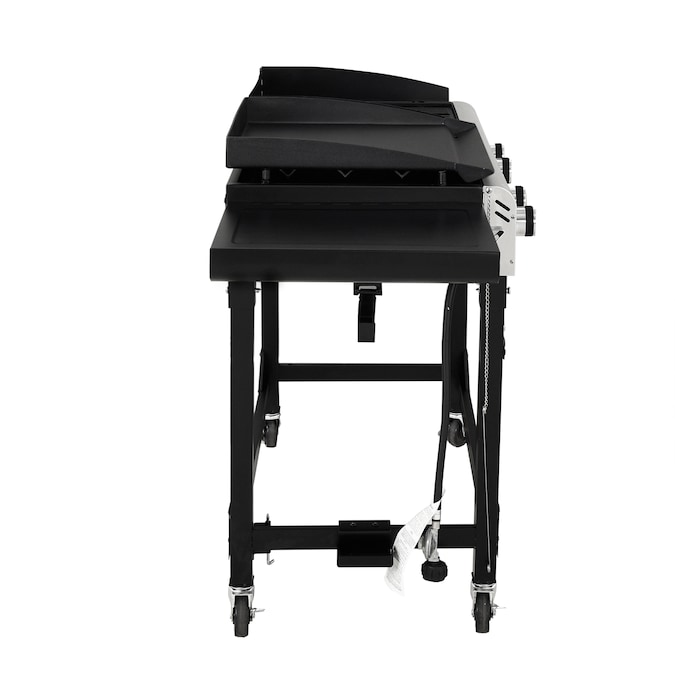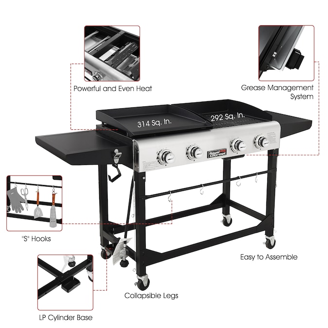 - Gas grill and griddle combo with two separate cooking zones for versatile outdoor cooking
