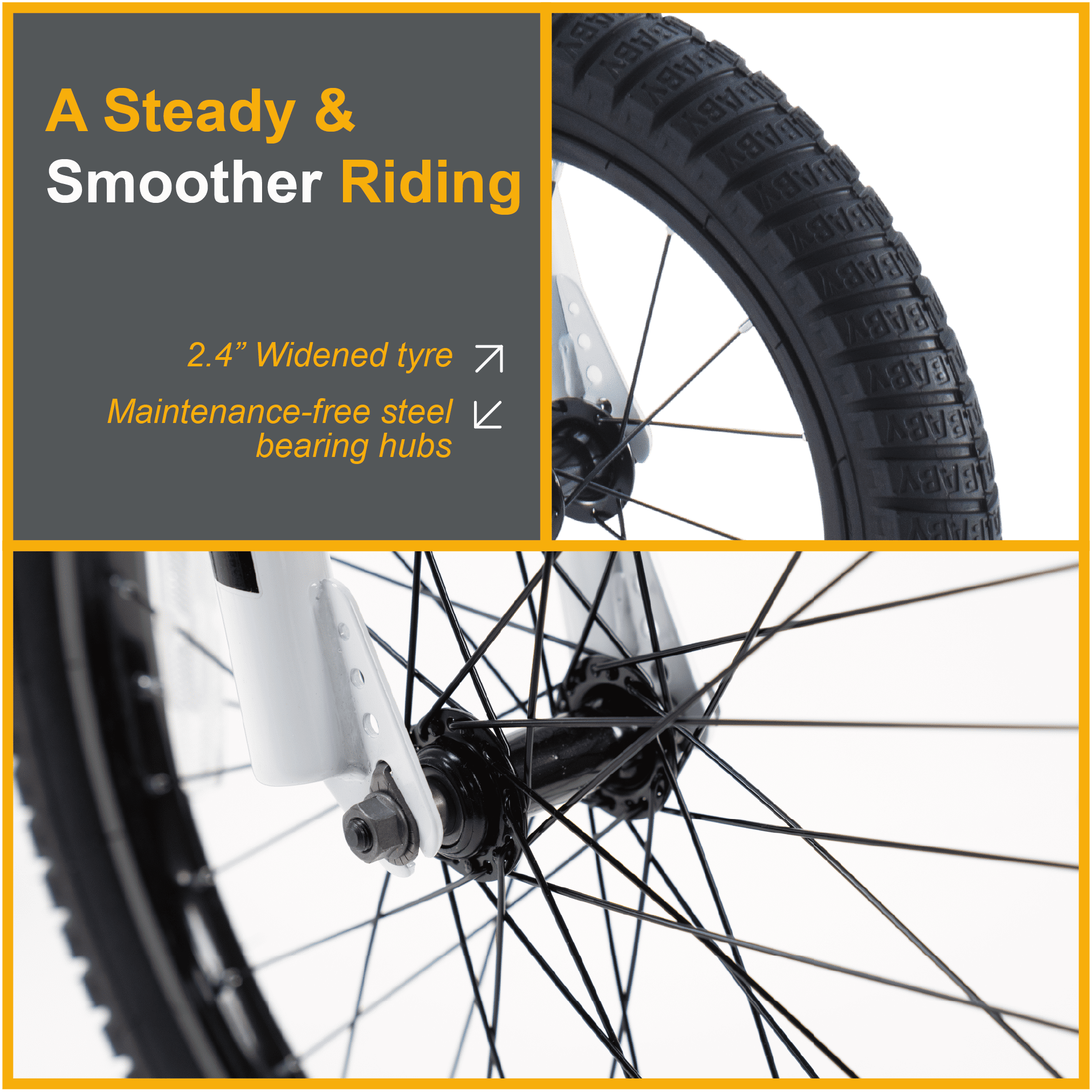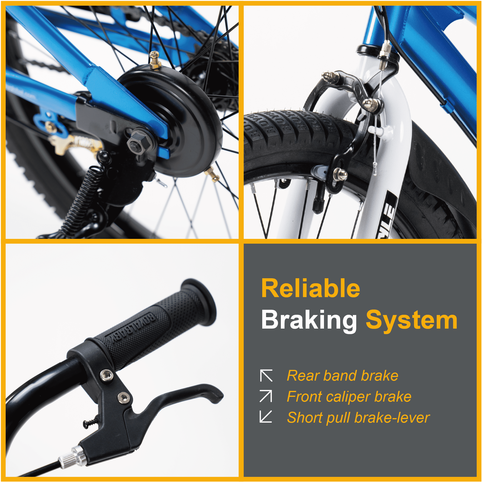 RoyalBaby 20″ FreeStyle Dual hand Brake Bike Timeless design. Quality components. Easy riding. The RoyalBaby 20″ FreeStyle was designed with inspiration from the BMX spirit; It’s all about fun, creativity, freedom, and friends. With kids in mind, the Freestyle is a timeless design with RoyalBaby-specified kids’ geometry components that is perfect for the next cycling star! The bike comes 95% pre-assembled, with an elaborate instruction manual and all tools needed in the box. Compared to other commonly seen 85% pre-assembled bikes, the Freestyle is easier to put together and more robust during transportation due to structural integrity. RoyalBaby bikes comply with the CPSC standards and are trusted by millions of families in more than 80 countries globally.