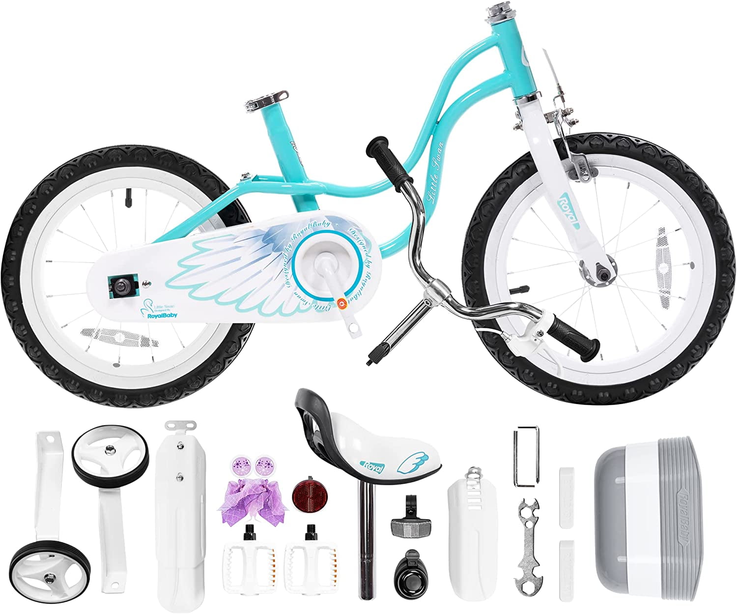 Royalbaby Little Swan Girls’ 14″ Training Wheel Bicycle _x000D__x000D_ Charming Design: inspired by the elegance of ballet, reflecting the grace of a ballerina Quality Components: tailored specifically for kids, ensuring a safe and enjoyable ride Easy Assembly: 95% pre-assembled, with necessary tools and easy-to-follow instruction manual Smooth Ride: maintenance-free bottom bracket with sealed bearing for long-lasting performance Stability and Control: wider pedals with enhanced grip, shorter travel distance brake lever Effective Braking: reliable front caliper brake and rear coaster brake for safe stopping Stylish Details: heart-shaped pattern tires, reinforced training wheel legs, and wider distance for improved maneuverability Additional Features: comes with a basket for carrying favorite dolls or items Trusted Brand: RoyalBaby complies with CPSC standards, trusted by families in over 80 countries worldwide