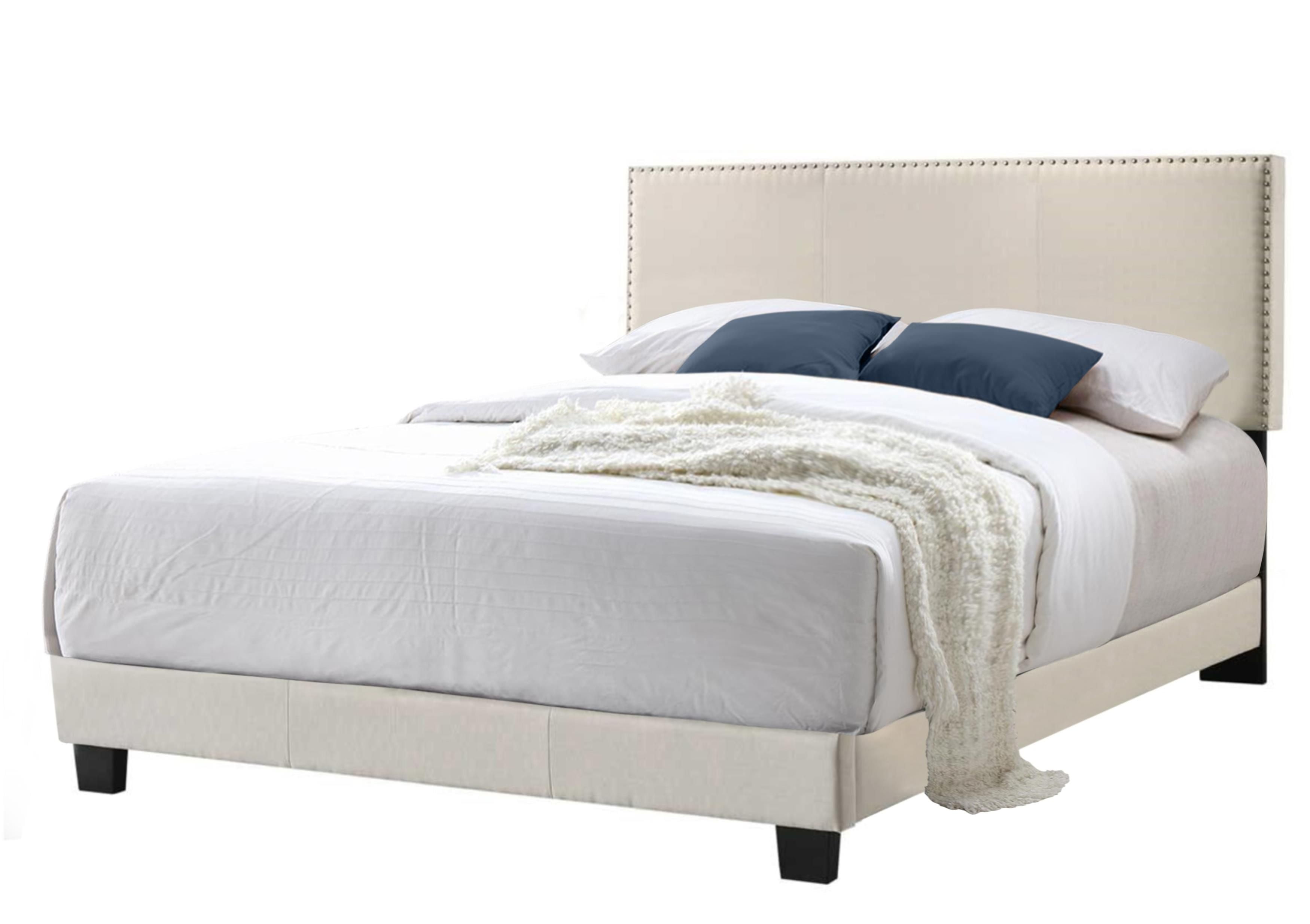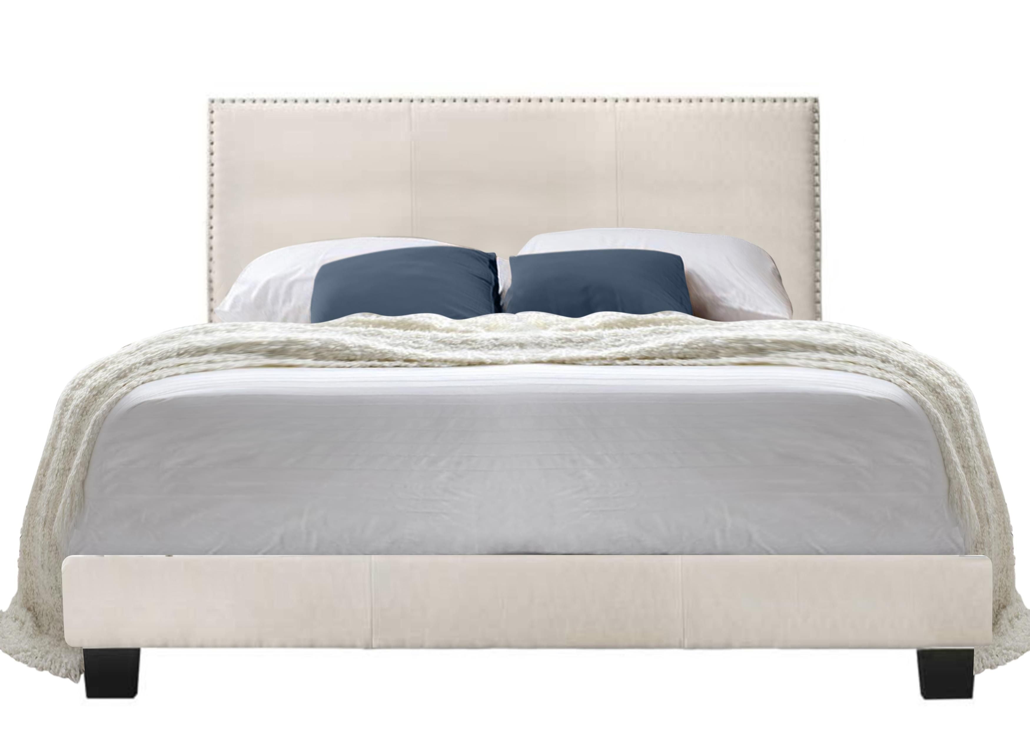 Royale Upholstered Platform Bed with Nail Trim Headboard, Queen