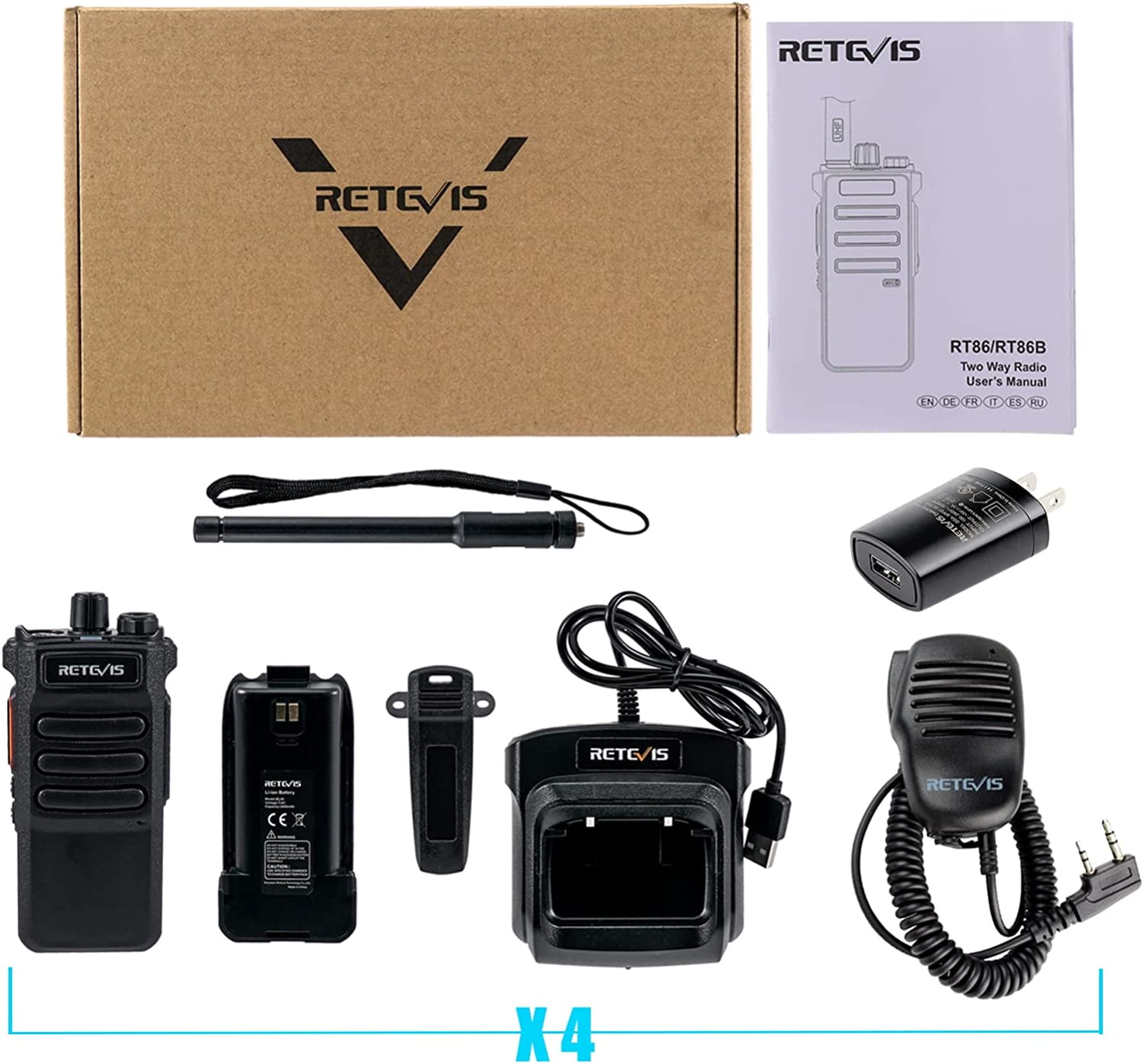 High power is the main factor that affects the maximum communication distance of the walkie talkie. RT86 has excellent high power long range transmission signals.On the open terrain, it makes the signal of the walkie talkie only affected by the curvature of the earth.t is a good helper for long-distance outdoor activity, such as skiing, hunting, forest adventure, offroad.2600mAh large battery capacity can provides 12-18 hours use time and up to 200 hours of standby time, which can easily meet the needs of a day’s work and daily use.Equipped with a power-saving mode, it will enter the power-saving mode when it is in standby for a long time, saving power and providing longer use time.1.4-inch digital display screen. Allows you to know the channel information and battery remaining status and other function display status at any time.The flashlight function can help you light up inthe darkness outdoor environment, which provides more convenience.The material of the walkie-talkie is durable and meets military standards, and can withstand an accidental drop of 2 meters.You can easily and quickly copy content from one walkie-talkie to another (note that it’s the same model).The remote emergency alarm will sound the alarm and notify your team to rescue you in time when you are in danger.50 CTCSS/232 DCS avoid unnecessary chat and provides you a secure call.Squelch can help you filter unnecessary signals and reduce the impact of surrounding noise on the call.