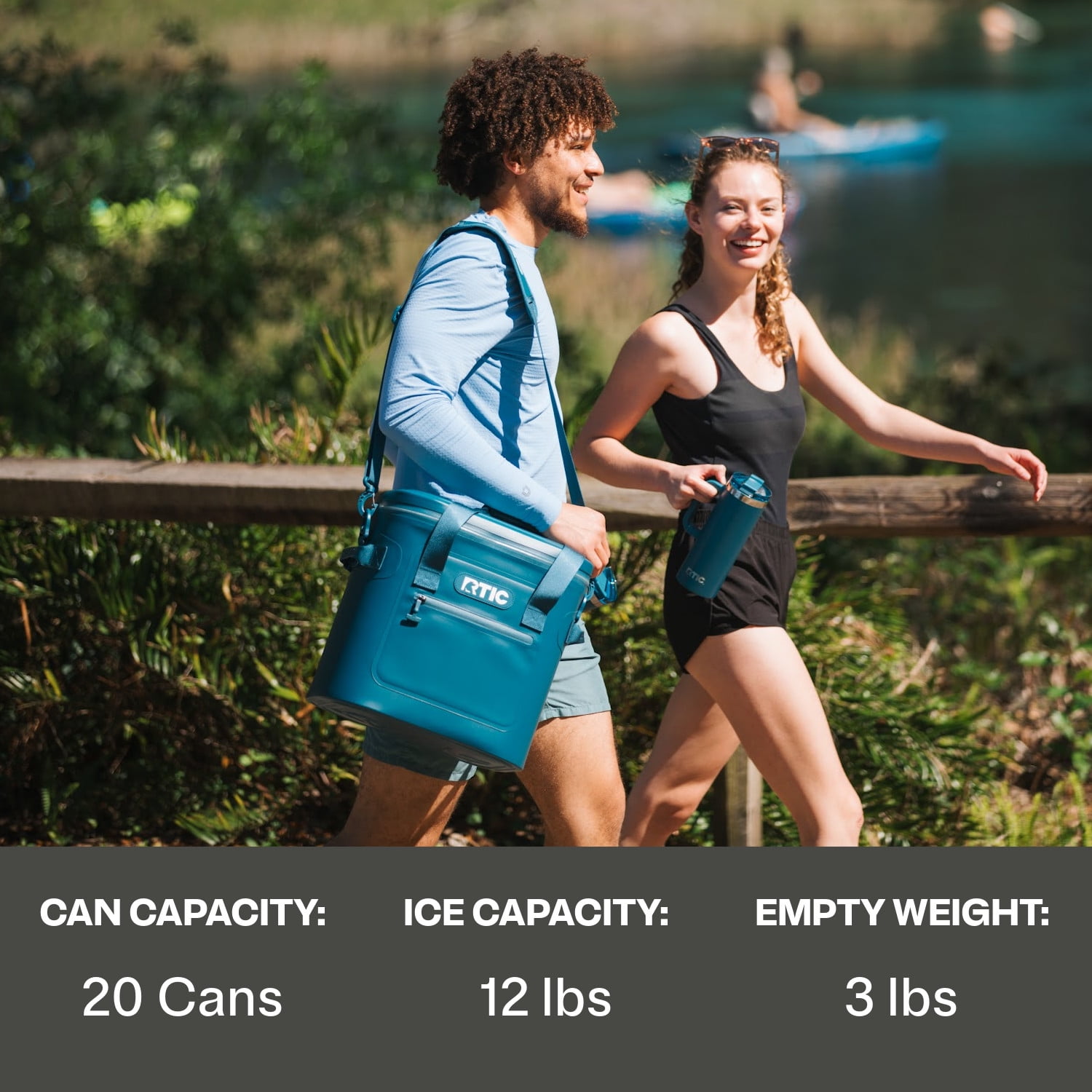RTIC Ultra-Tough Soft Cooler with 15 quart capacity holds 20 cans and keeps food cold for up to 2 days Floats in water making it the perfect cooler for the lake, pool, or boat Durable, leak-proof zipper and puncture-resistant liner prevent spills and tears Heavy-duty coated exterior built to handle rough terrain and outdoor conditions Includes zippered storage pocket and adjustable shoulder strap for easy carrying Available in 12 can, 20 can, 30 can, and 50 can sizes to suit every adventure
