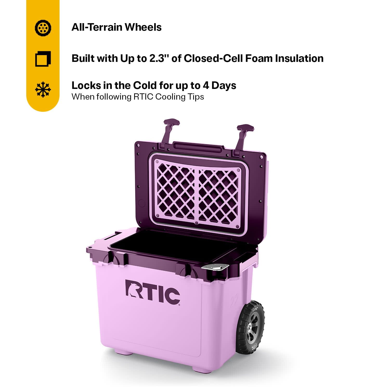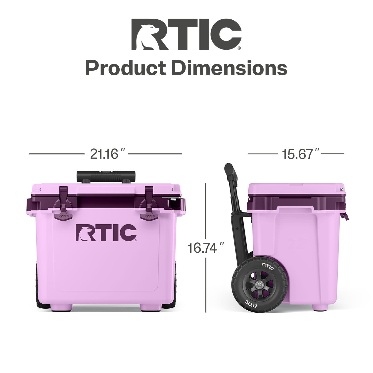 RTIC 22 QT Ultra-Light Wheeled Hard-Sided Ice Chest Cooler, Fits 28 Cans, 6 Wine Bottles, Lavender/Plum