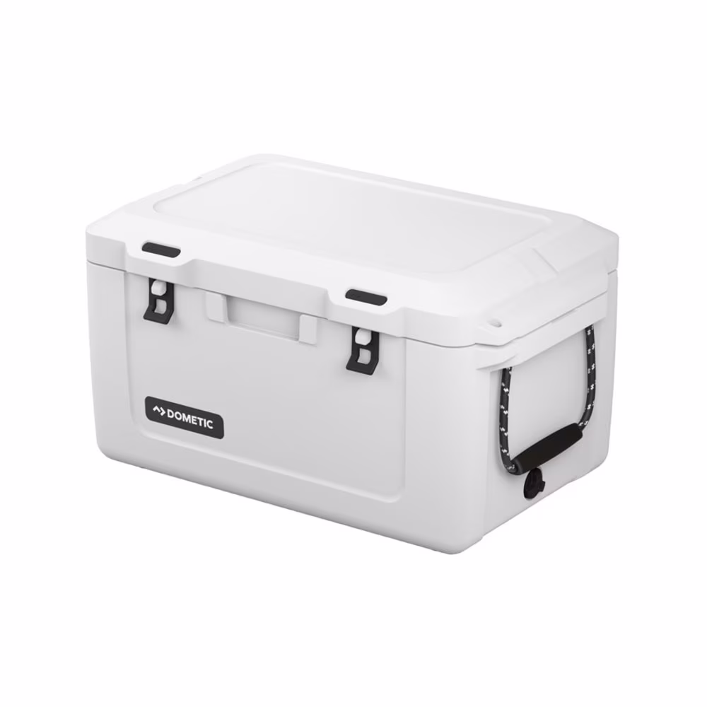 22 quart capacity holds up to 28 cans or 6 wine bottles Ultra-Light Construction uses injection molding to make this cooler durable and lightweight. Up to 2.3 inches of Closed-Cell Foam Insulation locks in the cold for up to 4 days. All-terrain wheels and telescoping handle for easy transport Single Plug Rapid V-Drain and non-skid rubber feet for secure use and easy draining Built-in stainless steel bottle opener and silicone cargo net for added convenience