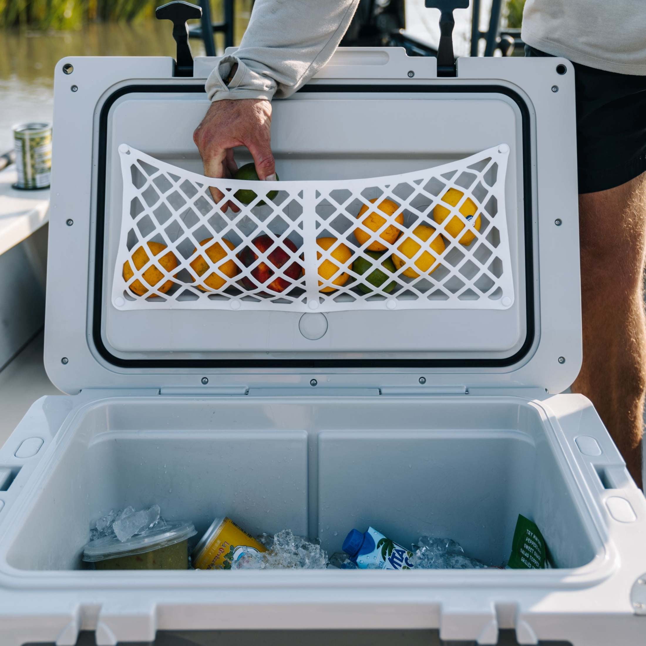 52 quart capacity holds up to 76 cans Ultra-Light Construction 30 percent lighter than rotomolded coolers of similar capacity Up to 3 inches of closed-cell foam insulation keeps contents cold for up to 7 days Marine-grade rope handles with durable grips for easy carrying Dual rapid V-Drain system allows easy hands-free draining Integrated lock holes fit 5/8 inch shackle for added security