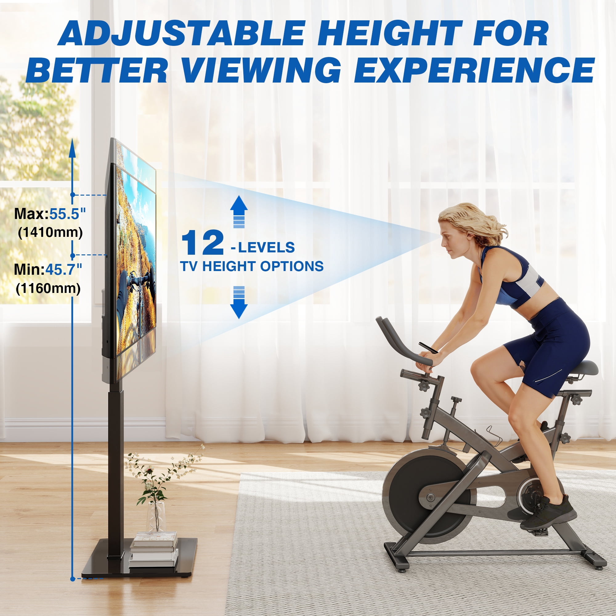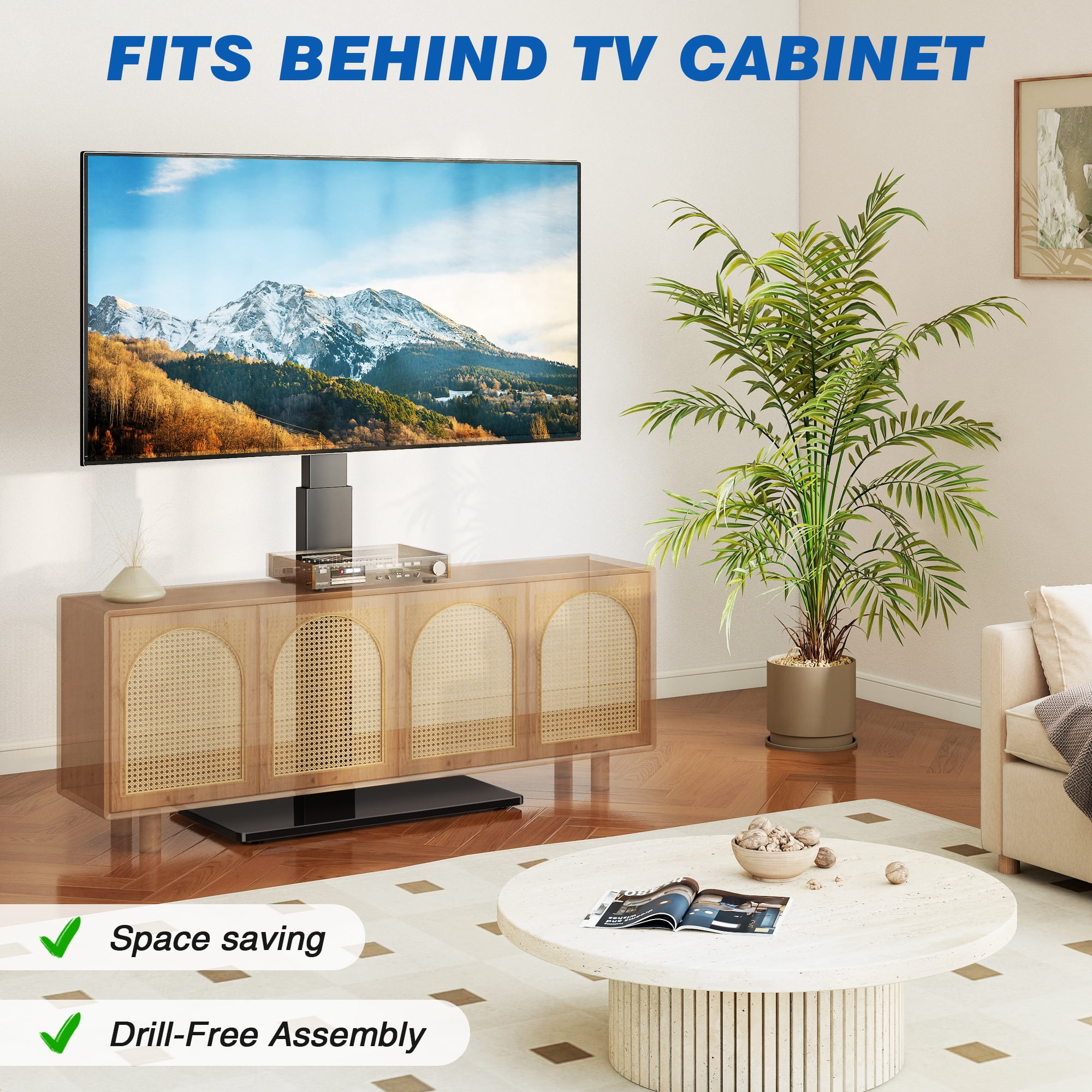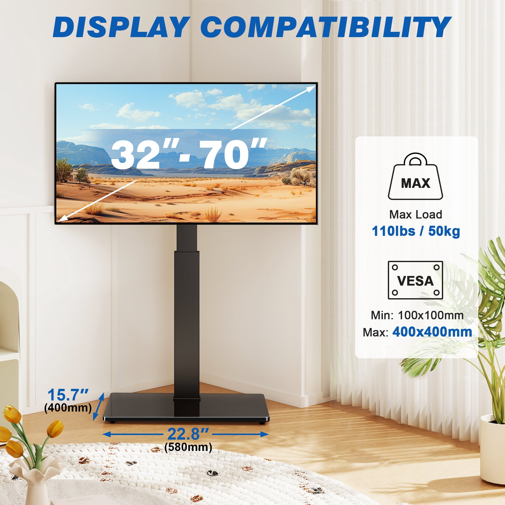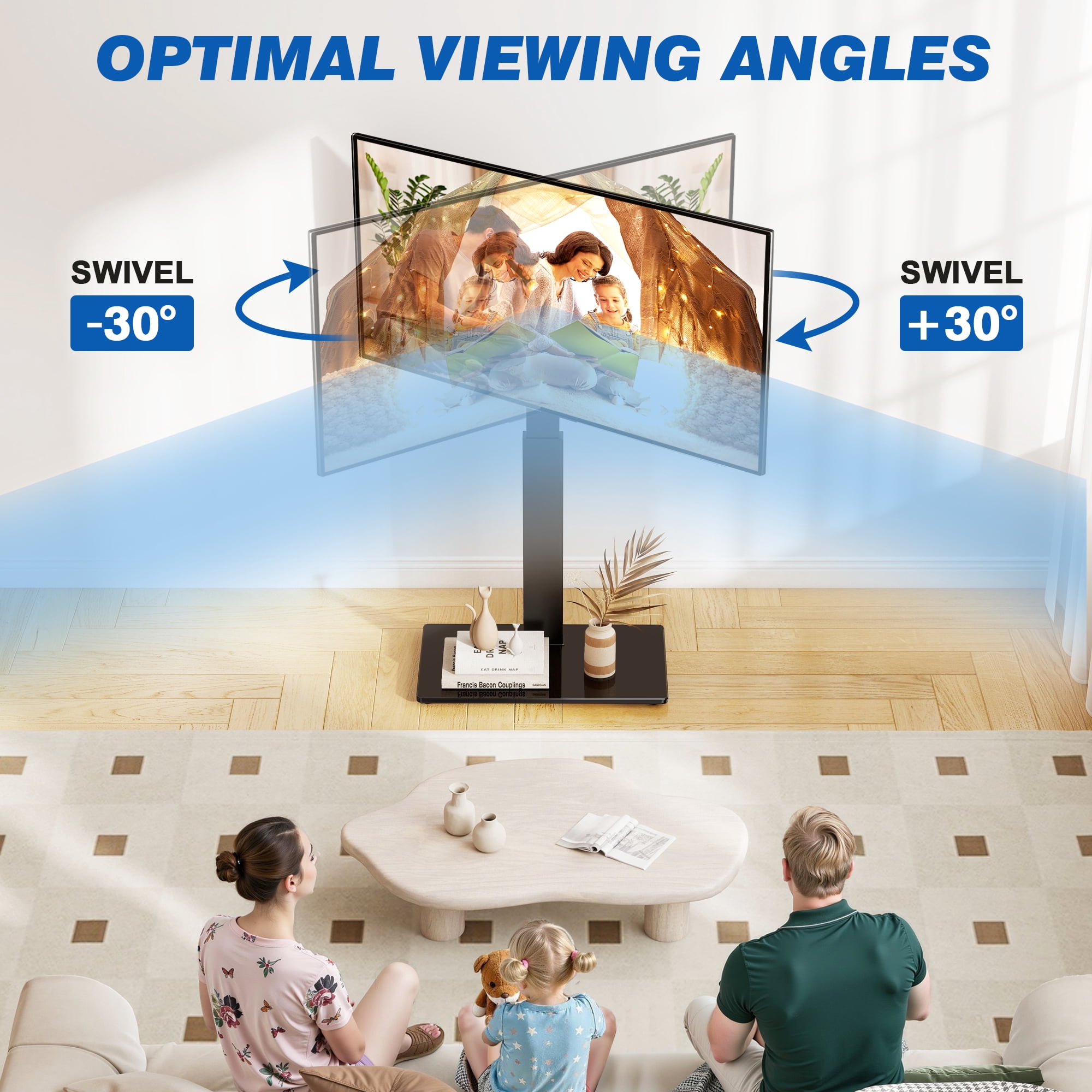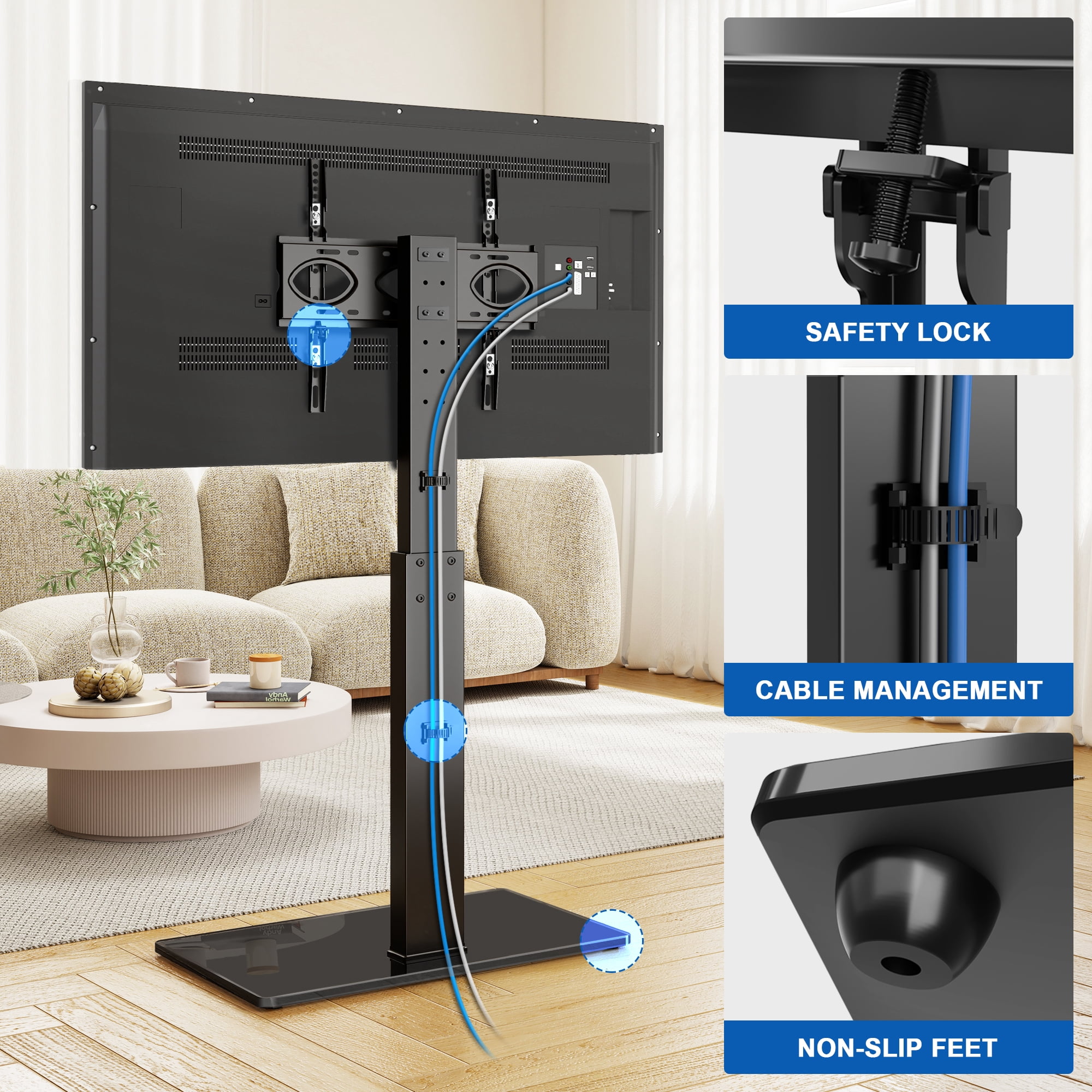 RTVR Floor TV Stand Swivel Adjustable Base for 32 – 75 inch Screens with Apple TV Roku Ultra Mount, Modern Black