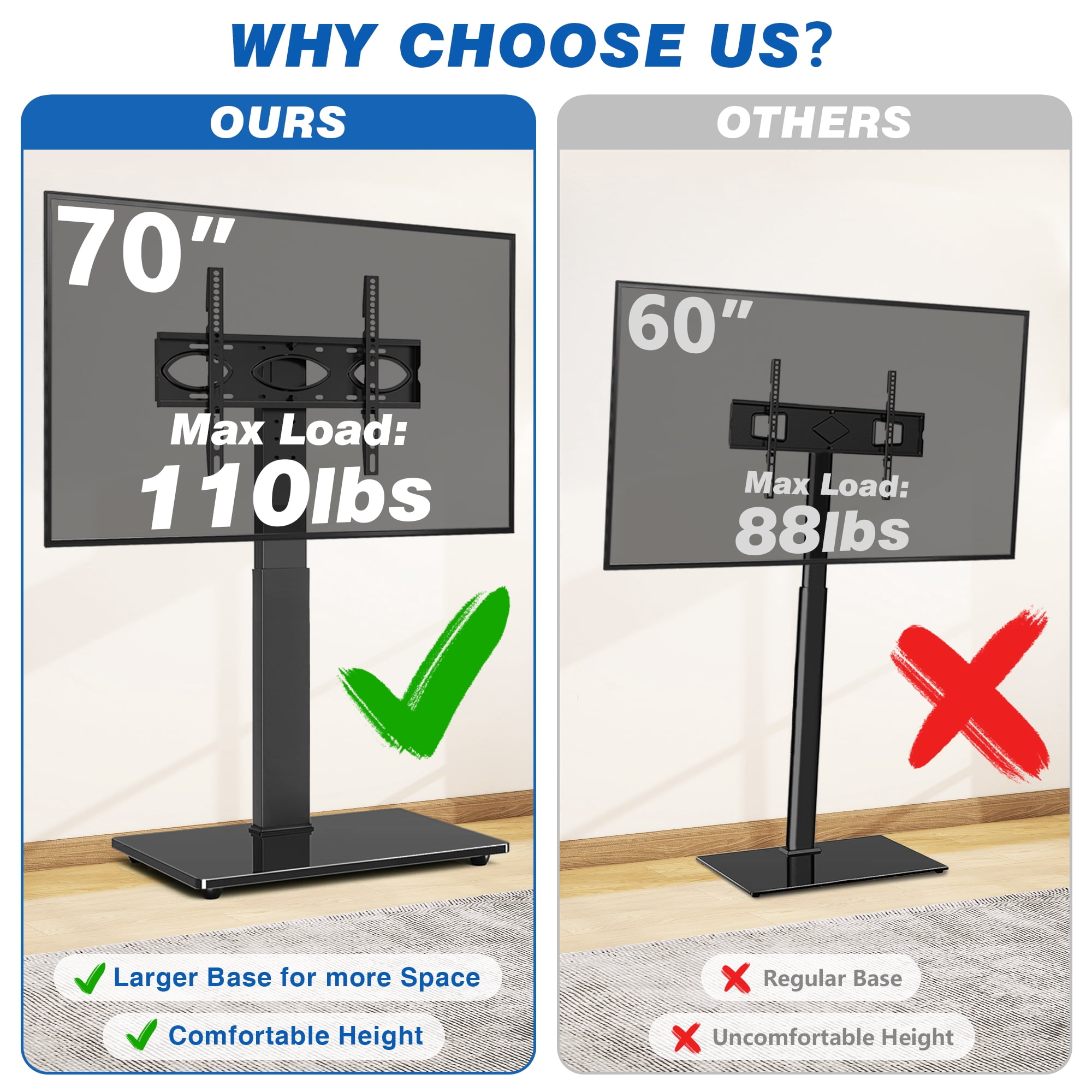 Package with floor tv stand, and Apple TV Roku ultra mount as well, you do not need purchase it from other place separately. Floor TV stand for 32 35 37 40 43 50 55 60 64 65 70 inch TVs, weight capacity up to 110 lbs. Swivel TV stand pans 30 degrees left or right, you can watch tv from different view angles. Universal tv stand VESA pattern meet different brand needs: 100 x 100 / 200 x 100 / 200 x 200 / 300 x 200 / 300 x 300 / 400 x 200 / 400 x 300 / 400 x 400 mm. TV pole stand can be adjusted from 42.1″ to 50″. Product dimension: 22.8″ x 15.7″ x 50″ (L x W x H). Cable management easy to hide messy cables. Portable TV stand with mount is designed to fit a wide range of TV brands, including LG Electronics and Samsung. It is also compatible with many other popular brands. Package with floor tv stand, and Apple TV Roku ultra mount as well, you do not need purchase it from other place separately. Floor TV stand for 32 35 37 40 43 50 55 60 64 65 70 inch TVs, weight capacity up to 110 lbs. Swivel TV stand pans 30 degrees left or right, you can watch tv from different view angles. Universal tv stand VESA pattern meet different brand needs: 100 x 100 / 200 x 100 / 200 x 200 / 300 x 200 / 300 x 300 / 400 x 200 / 400 x 300 / 400 x 400 mm. TV pole stand can be adjusted from 42.1″ to 50″. Product dimension: 22.8″ x 15.7″ x 50″ (L x W x H). Cable management easy to hide messy cables. Portable TV stand with mount is designed to fit a wide range of TV brands, including LG Electronics and Samsung. It is also compatible with many other popular brands. Whether your TV is an LCD, LED, OLED, QLED, Plasma, or any other type of panel, this stand can support it with ease. Whether your TV is an LCD, LED, OLED, QLED, Plasma, or any other type of panel, this stand can support it with ease. If received damaged one, please feel free contact us. We’d more than happy to resolve! If received damaged one, please feel free contact us. We’d more than happy to resolve!
