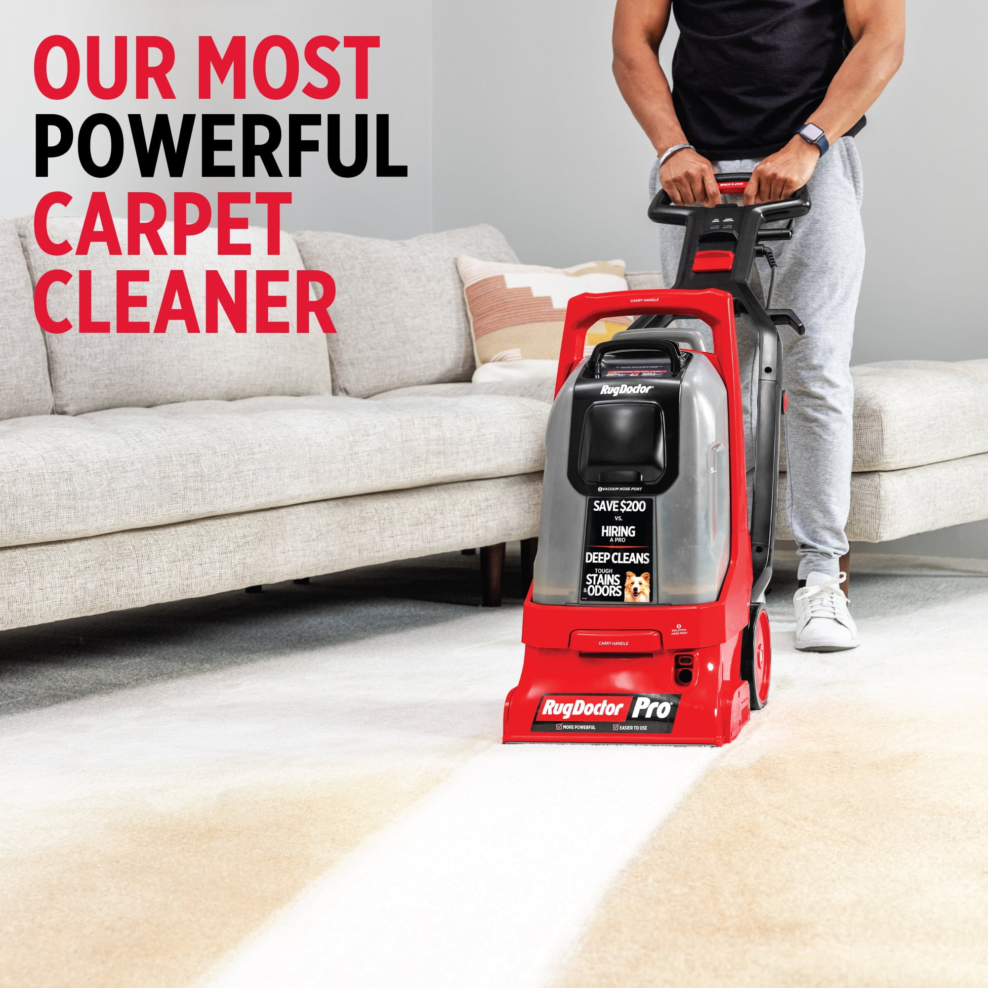 OUR MOST POWERFUL CARPET CLEANER: Superior suction power removes embedded dirt, stains, grime and odors for professional cleaning results. EASY TO USE: Intuitive back and forth cleaning like a vacuum. The Pro Deep is a commercial carpet shampooer and grime extractor, making it an ideal cleaner for commercial,, and home use. VERSATILE: Motorized upholstery tool (sold separately) professionally deep cleans carpets, area rugs, stairs, upholstery, car interiors, pet beds, and more. LARGE CAPACITY TANKS: Features 2 large-capacity, 1.5-gallon tanks and built-in measuring cup. Easily lift and remove the tanks when it’s time to empty or fill the machine. ADJUSTABLE HANDLE: The Pro Deep carpet shampooer machine features an ergonomic comfort grip handle that adjusts to your perfect grip. Fold it down for easy storage. DIGITAL INDICATOR LIGHTS alert the user when the cleaning solution is empty or if there is a brush roll jam. EASY TO STORE: The Pro Deep carpet shampoo machine is convenient to transport and store with easy-carry and fold-down handles. PROFESSIONAL CLEAN, DIY EASE: Refresh the home or large office space with commercial strength cleaning power. Comes with a 1-year limited consumer and commercial warranty.