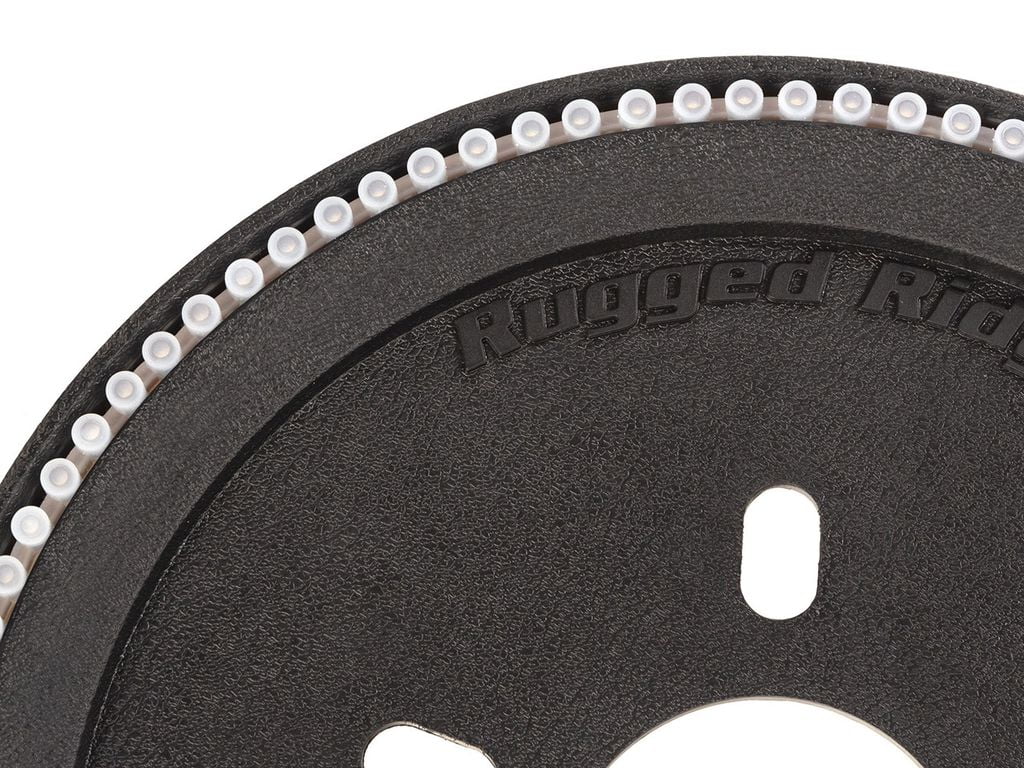 If you have “lifted” your Jeep or have a larger-than-stock spare wheel and tire on the back, chances are your high-mount third brake light has either been deleted completely or is not as effective as it once was. Rugged Ridge has the perfect solution to restore your Jeep Wrangler JL to factory safety standards AND increase the cool factor at the same time! The Rugged Ridge Third Brake Light LED Ring adds a surprisingly brilliant ring of torch-red LED’s behind your spare tire- guaranteed to grab the full attention of all who are near. Designed to work with various rim diameters from stock to 20-inch diameters, our LED Ring installs easily with the included heat-shrink connectors for seamless performance in all kinds of weather. Patent Pending